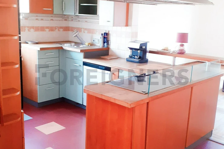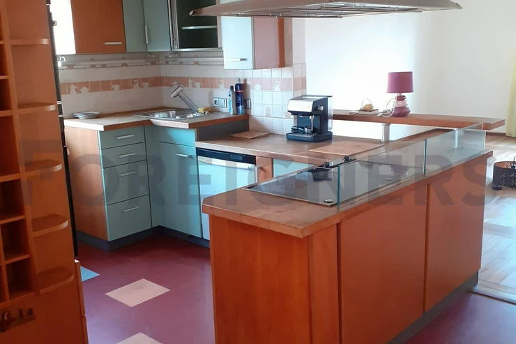 We offer for rent a spacious, bright, and airy duplex apartment with a size of 160 m², located on the 4th floor of a building with an elevator, right next to a park in Vršovice. The location combines a peaceful environment with perfect accessibility – bus stop just 1 minute from the building, tram and Eden shopping center only 5 minutes on foot.