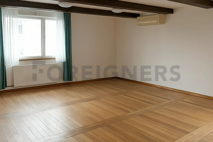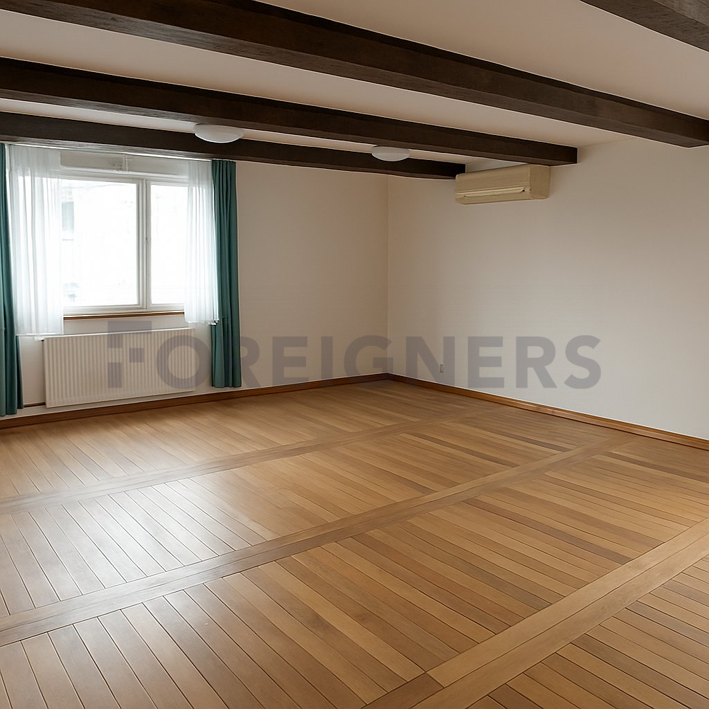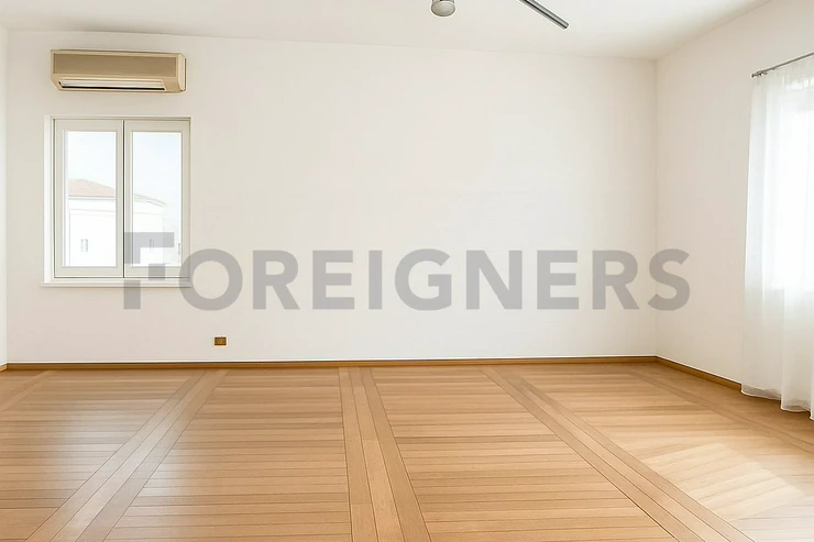 The apartment boasts three separate rooms, perfect for a family or demanding clients, plus an additional upstairs room with practical storage space. The centerpiece of the home is a bright and spacious living room, designed for relaxation and family gatherings. Two generous bedrooms provide comfort for family or guests, while a large study offers an inspiring space for work or creative projects.