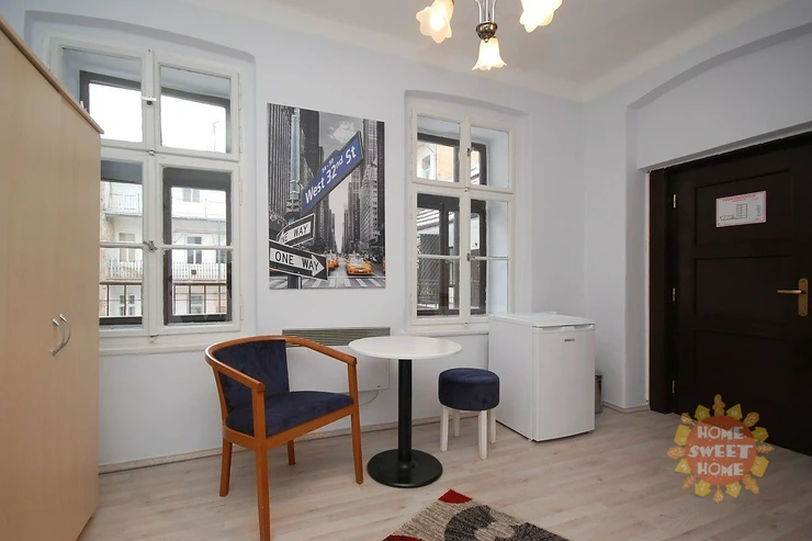 It is a popular location, just minutes from the University of Economics. There are excellent civic amenities - cafes, restaurants, shops and more. Transport accessibility - 4 minutes to the tram or bus station (1 tram stop to the metro station Hlavní nádraží, line C). The apartment is ideal for students and can be rented for less than a year.
