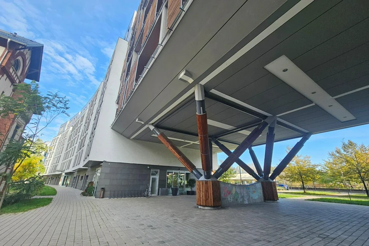 Klidná lokalita, výborná dopravní dostupnost metro C Nádraží Holešovice, tramvajové zastávky, bus, hřiště před domem, cyklostezka podél Vltavy