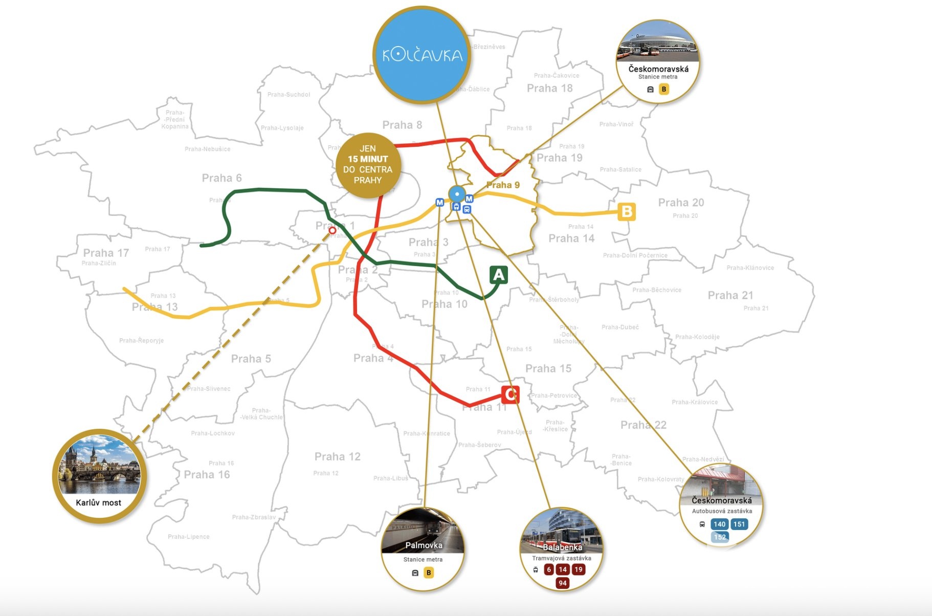 The Kolčavka (KOLČAVKA) residential project is located in an attractive part of Prague, offering full civic amenities. Within walking distance, you will find a variety of stylish restaurants and cafés, the Harfa shopping center, supermarkets, small shops, pharmacies, and the Vysočanská polyclinic. Right on the street is the Kolčavka Brewery, and nearby are the O2 Arena, Pod Palmovkou Theatre, and Gong Theatre.