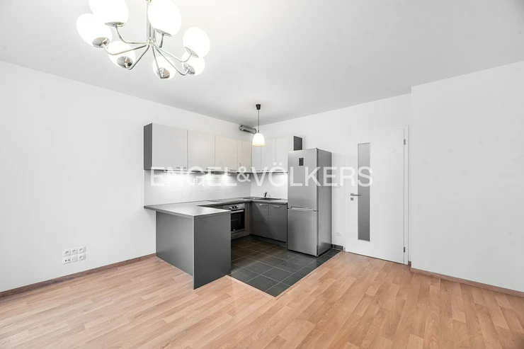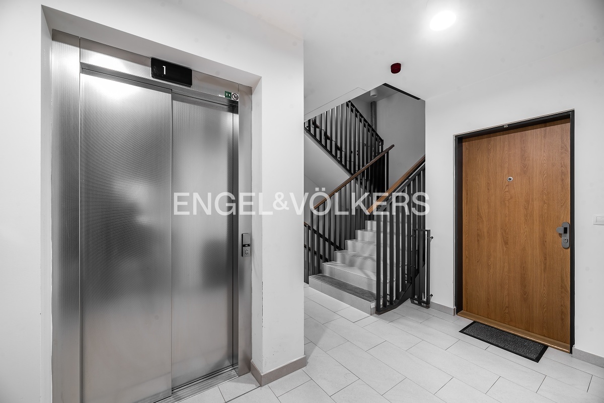 The location on the border of Žižkov and Malešice is ideal for family living, offering all amenities in the area.