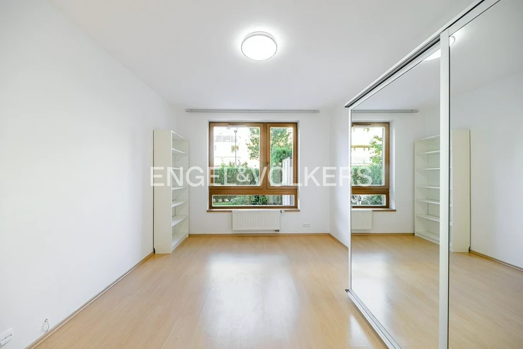 The apartment is practically designed so that you enter through the hallway, which has a large built-in wardrobe and a separate toilet. Living room with direct access to the terrace with garden and kitchen fully equipped with all appliances. The bedroom is with a large wardrobe and en-suite bathroom. The apartment is rented unfurnished.