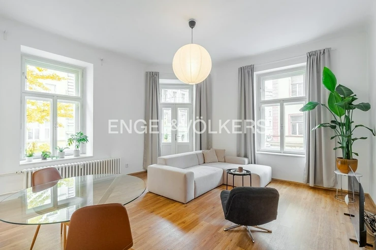 For rent, we offer an unfurnished bright apartment with a 3+1 layout, located on the 2nd floor of a well-maintained apartment building with an elevator, in the popular part of Prague's Vinohrady district.