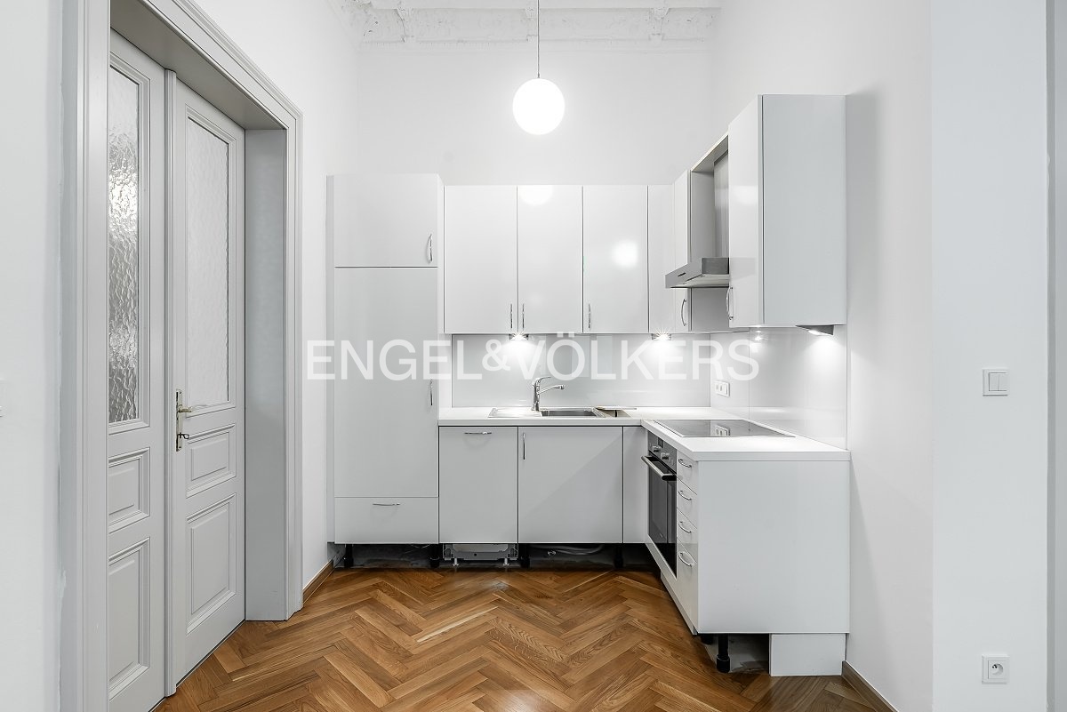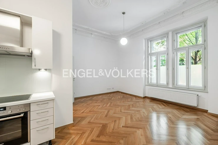 For long-term rent, we offer an elegant 2+kk apartment in a fully renovated historic building in Vinohrady.
