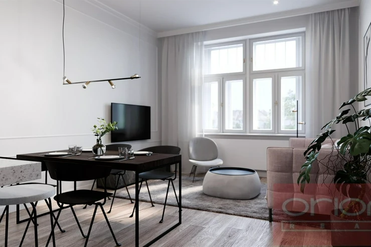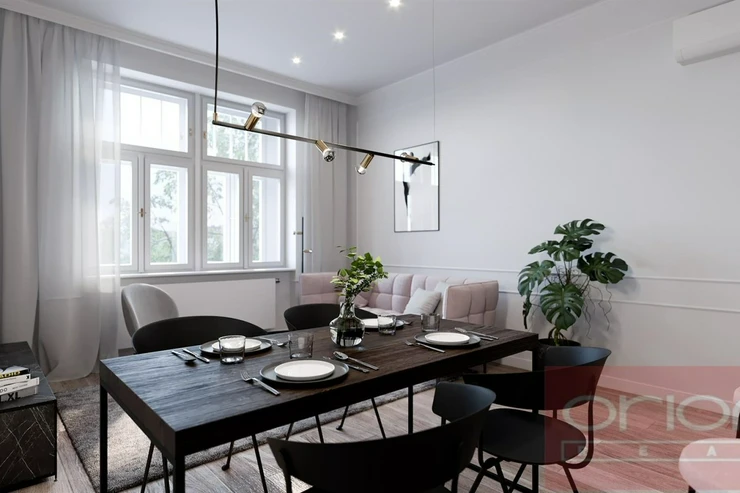 High quality renovated air-conditioned two bedroom apartment on the 4th floor of reconstructed building with lift in popular location of Prague - Vinohrady, just a few steps from the metro station and tram stop Jiřího z Poděbrad. Square Jiřího z Poděbrad is nice place with many cafes, restaurants, shops, farmer markets. Nearby is the Riegrovy sady park. The unfurnished apartment has total area 93 sqm and offers entry hall, living room with fully fitted kitchen, 2 bedrooms, 2 bathrooms with tub, shower, bidet and toilet, storage room, guest toilet. Oak wooden and tiles floors, AC, wine fridge, washing machine, dryer, build-in wardrobes, new windows with double glassing. One parking space is included in the rent. The apartment can be furnished for higher rent.