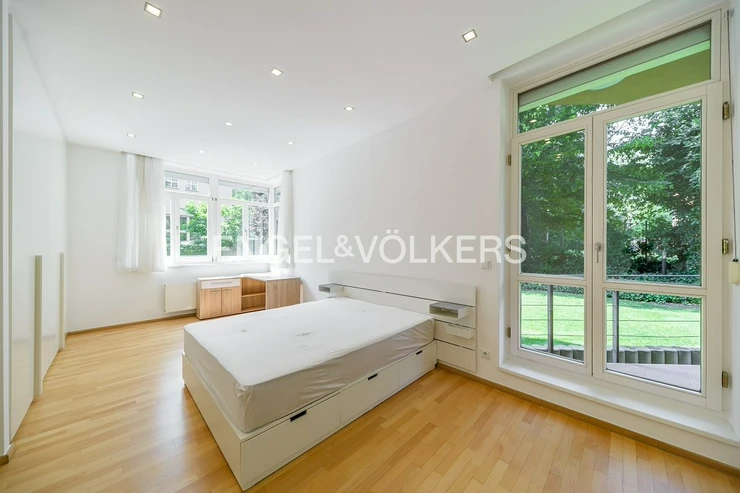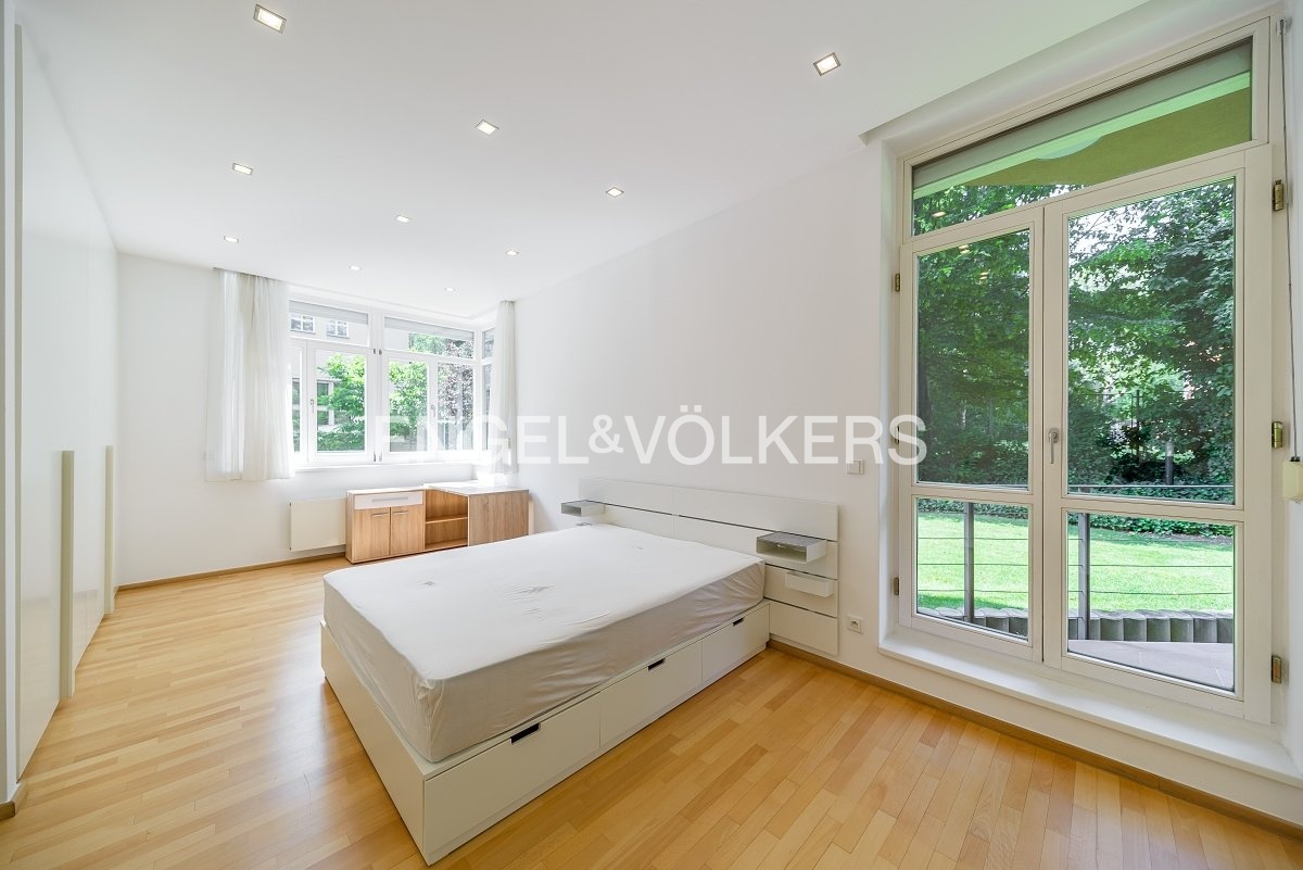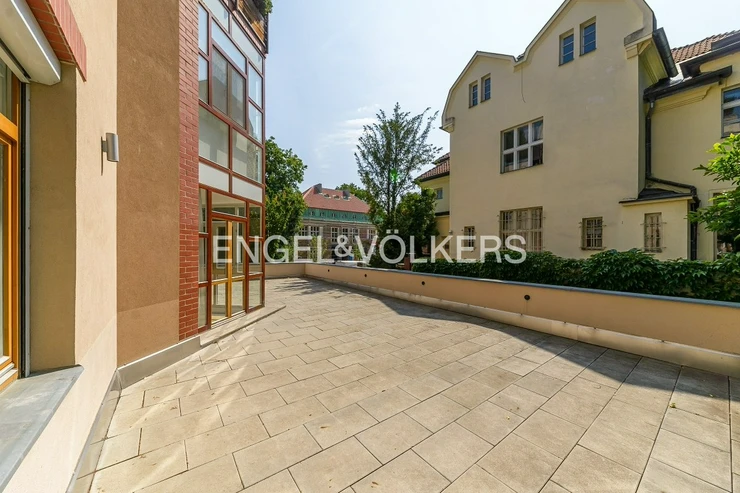 Partly furnished large apartment 5+kt with terrace, balcony and garage parking at a prestigious address in a quiet part of Prague Bubeneč.