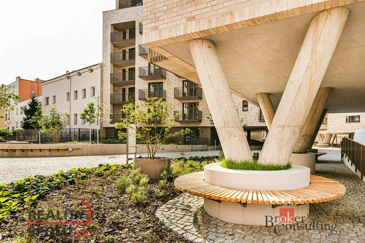 - uzavřený vnitroblok se zelení, lavičkami a relaxačními zónami