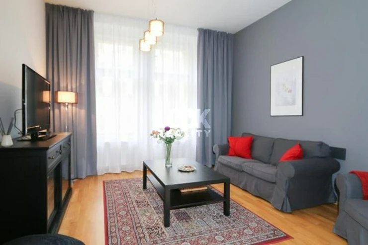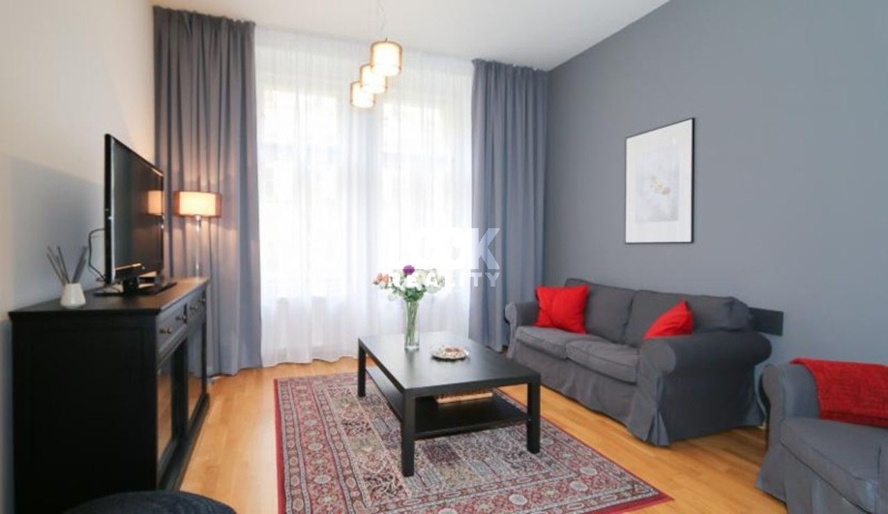 Luxury apartment in Prague 2 - Vinohrady, near park Grebovka. We offer for rent a beautiful 3+kk apartment with an area of 65 m2. The apartment is located on the 3rd floor of a beautiful historic building with an elevator on Moravská Street. The apartment consists of a spacious entrance hall, living room with kitchenette, separate bedroom with double bed, separate room with single bed, and bathroom. The apartment is fully furnished with a sofa set, coffee table, dining table with chairs, wardrobes and chests of drawers, beds, bedside tables, and lamps. The kitchen is fully equipped with all appliances: stove, oven, range hood, refrigerator, freezer, dishwasher, microwave, toaster, coffee maker, and electric kettle. The bathroom has a bathtub, washing machine, and toilet. There is a separate toilet. There is also a flat-screen TV, DVD player, air conditioning, and internet. Pets are allowed. Excellent transport accessibility. The Jana Masaryka tram stop and Náměstí Míru metro station are located near the apartment. All civic amenities: restaurants, schools, shops, libraries, theaters, pharmacy, post office, sports facilities. There are also parks in the area - Havlíčkovy sady and Bezručovy sady, ideal places for walks, relaxation, or sports. Very pleasant living in a beautiful location. Available from 1. March 2026.