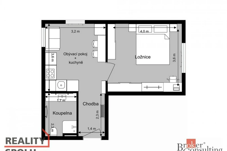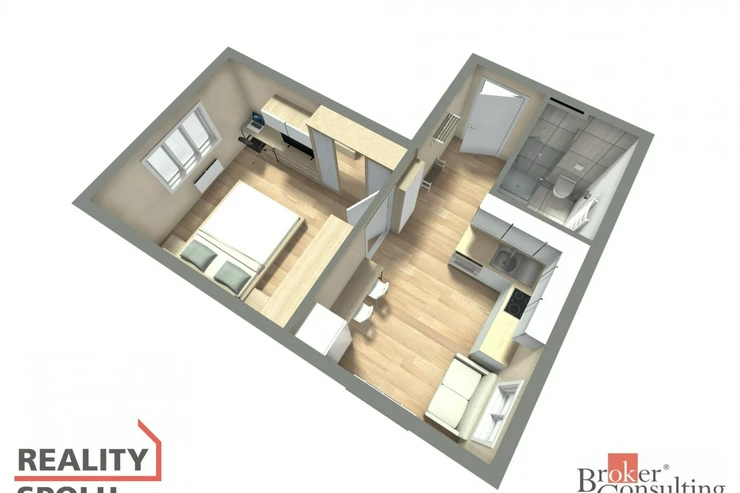 Byt je rozdělen na obývací pokoj s kuchyňským koutem, ložnici, koupelnou s WC. Parkování je možné přímo u domu.
