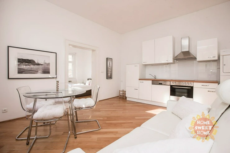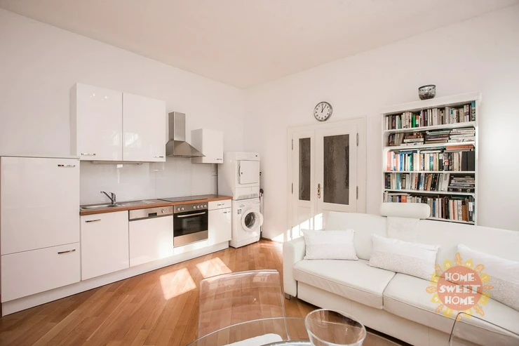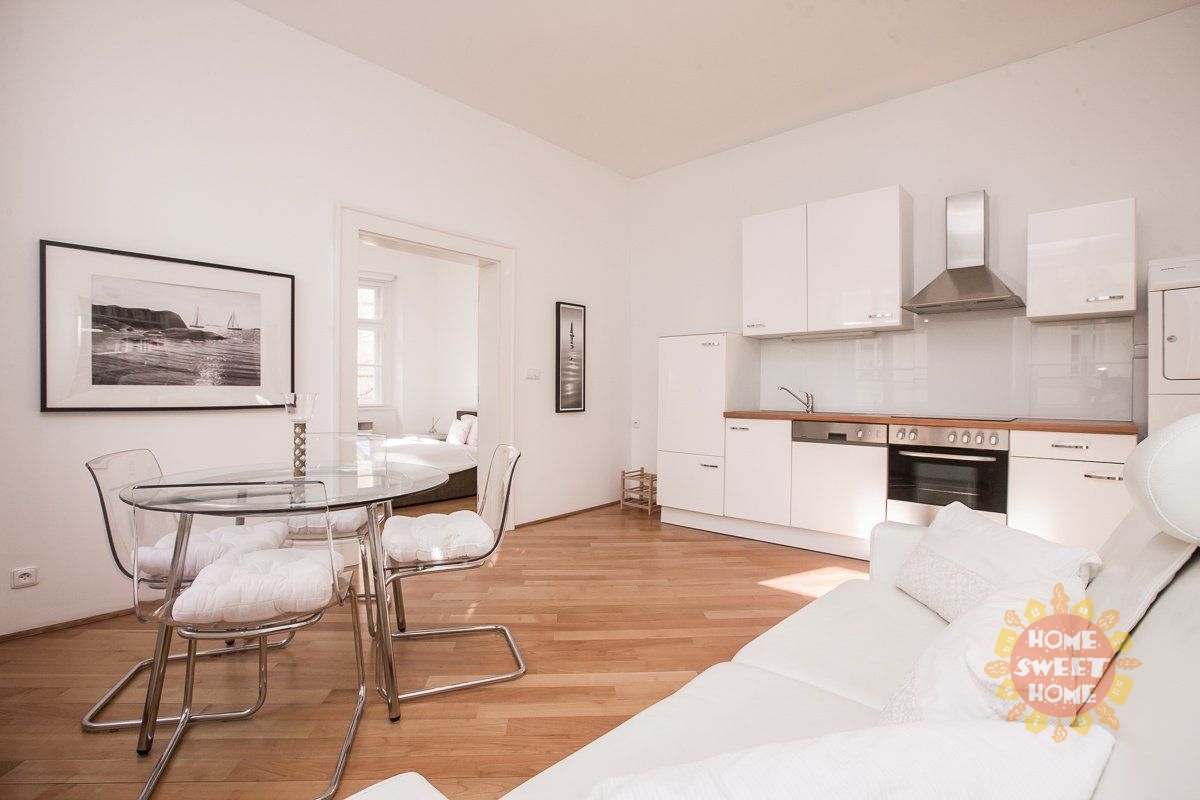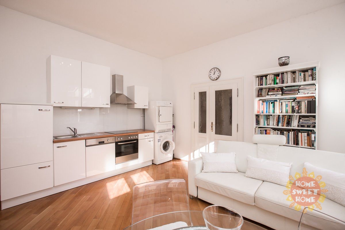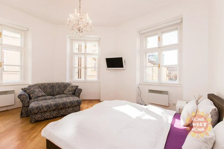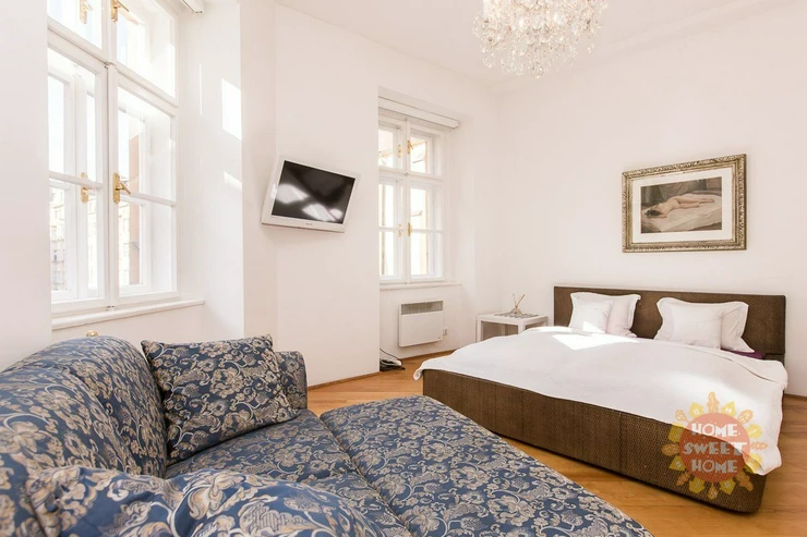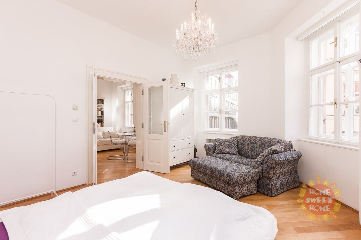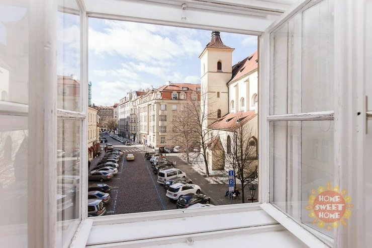We offer a unique 1-bedroom apartment (2+kk) of 46 m² for long-term rent, located on the 2nd floor of building on the quiet Haštalská Street in Prague 1 – Old Town. The building, formerly known as U Modré boty, dates back to the 15th century and is part of the UNESCO cultural heritage. It has undergone a complete renovation with great emphasis on preserving its original architectural elements. The apartment has also been fully renovated. It is bright and offers a beautiful view of the Old Town.