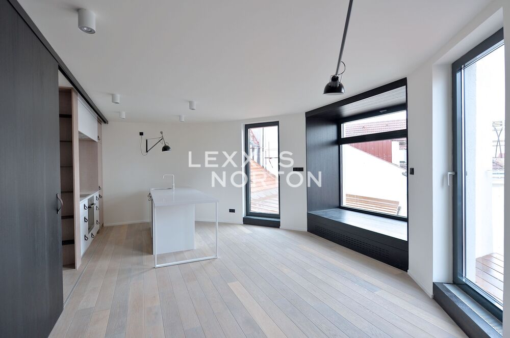 We offer spacious partly furnished 1-bedroom apartment of 60 sqm, complemented by 2 generous terraces (40 sqm and 60 sqm) with views of the most beautiful places of Prague and residential atmosphere, located on the 5th floor of a building with elevator.The layout of the apartment includes an entrance hall, a living room with a fully equipped kitchenette that seamlessly connects to one of the terraces, a designer bathroom, a separate toilet, and 1 bedroom.The apartment offers a fully equipped kitchenette (stovetop, oven, dishwasher, microwave, refrigerator, freezer), bathroom (sink, shower, washing machine, dryer), built-in wardrobes, and a bed. The flooring consists of high-quality oak floors and the new windows in the apartment have double glazing. The apartment is also air-conditioned and there is the possibility of renting a parking space for CZK 7,550/month.The highly sought-after and lucrative location of Prague's Vinohrady - Jiriho z Podebrad Square - guarantees its residents a carefree life at a high level, thanks to the complete civic amenities on site as well as excellent transport infrastructure (tram and metro station Namesti Jiriho z Podebrad are located in close proximity to the housing). If you like to spend your free time surrounded by greenery, then you will surely be satisfied with a wide choice of several adjacent parks - Svatopluk Cech's Gardens, Mahler's Gardens, Bezrucovy Gardens, Brothers Synku Gardens, Rajska zahrada or Riegrovy Sady. If you prefer to visit shopping centres, there is nothing easier than visiting the nearby Atrium Flora OC. Nearby you can also find several kindergartens and primary schools, playgrounds, pharmacies, post offices, etc.The amount of billable monthly deposits is EUR 125/person/month +gas 6 000,- CZK/month deposits and electricity (transfer to the tenant).The inquiring client agrees to pay a commission of 1 month's rent plus VAT.If you cannot view the property in person, we also offer you a video tour from the comfort of your home in real time via Messenger, WhatsApp and other communication platforms.
