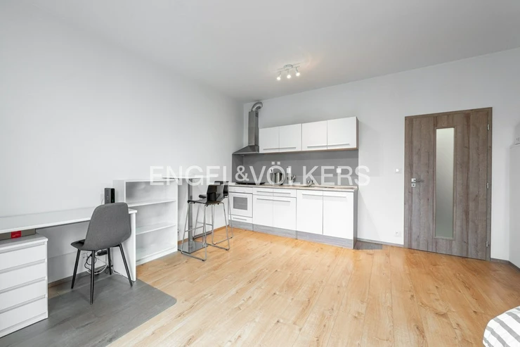 We offer for long-term rent a new practical apartment with a layout of 1+kt. The apartment has an equipped kitchen, and a washing machine. The apartment is located in a new residence, and its location provides good transport accessibility to the center through the bus stop right next to the house or the Metro station C - Roztyly. The location offers full civic amenities in the form of sports facilities, shops, surgeries, and the Westfield Chodov shopping centre is also nearby.
