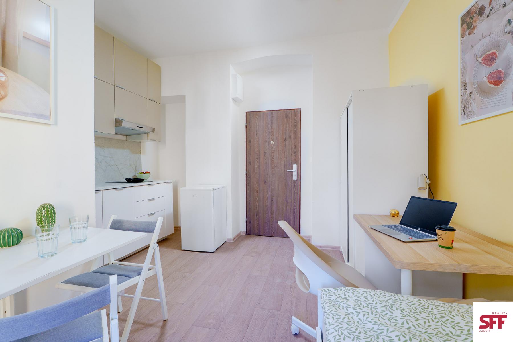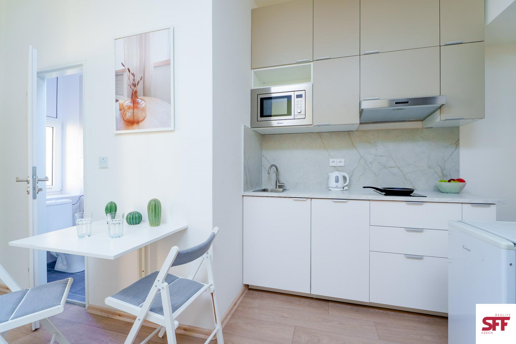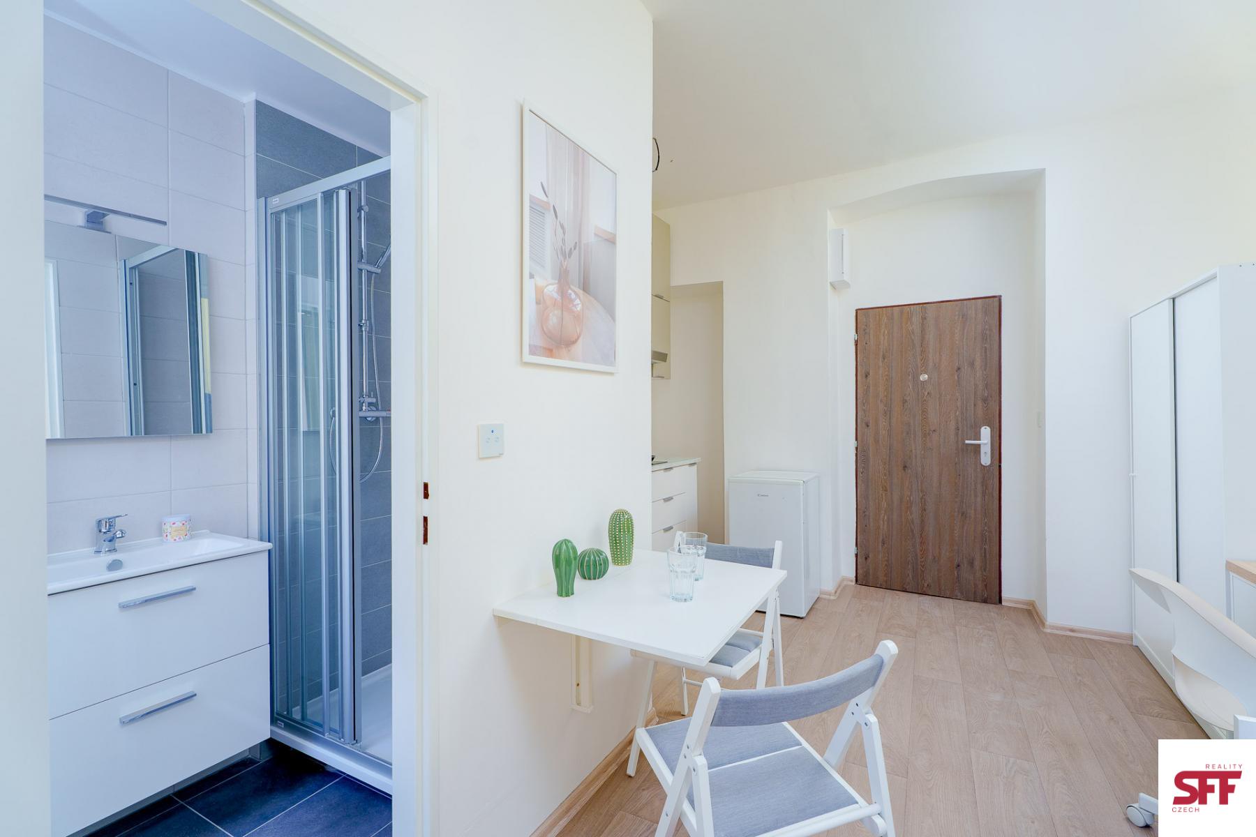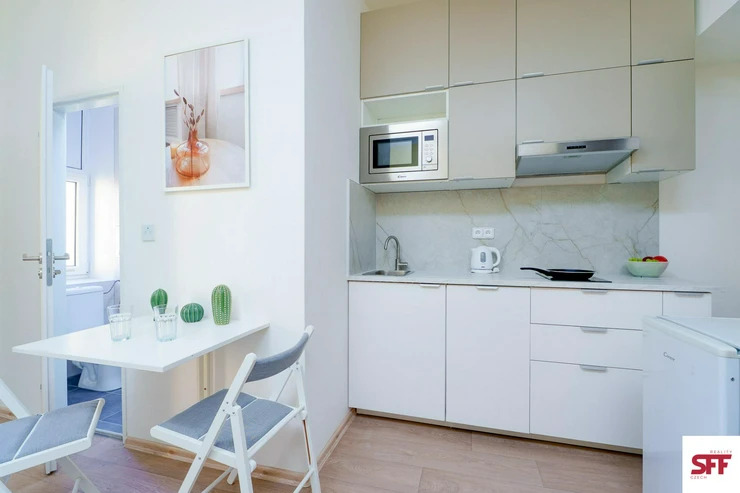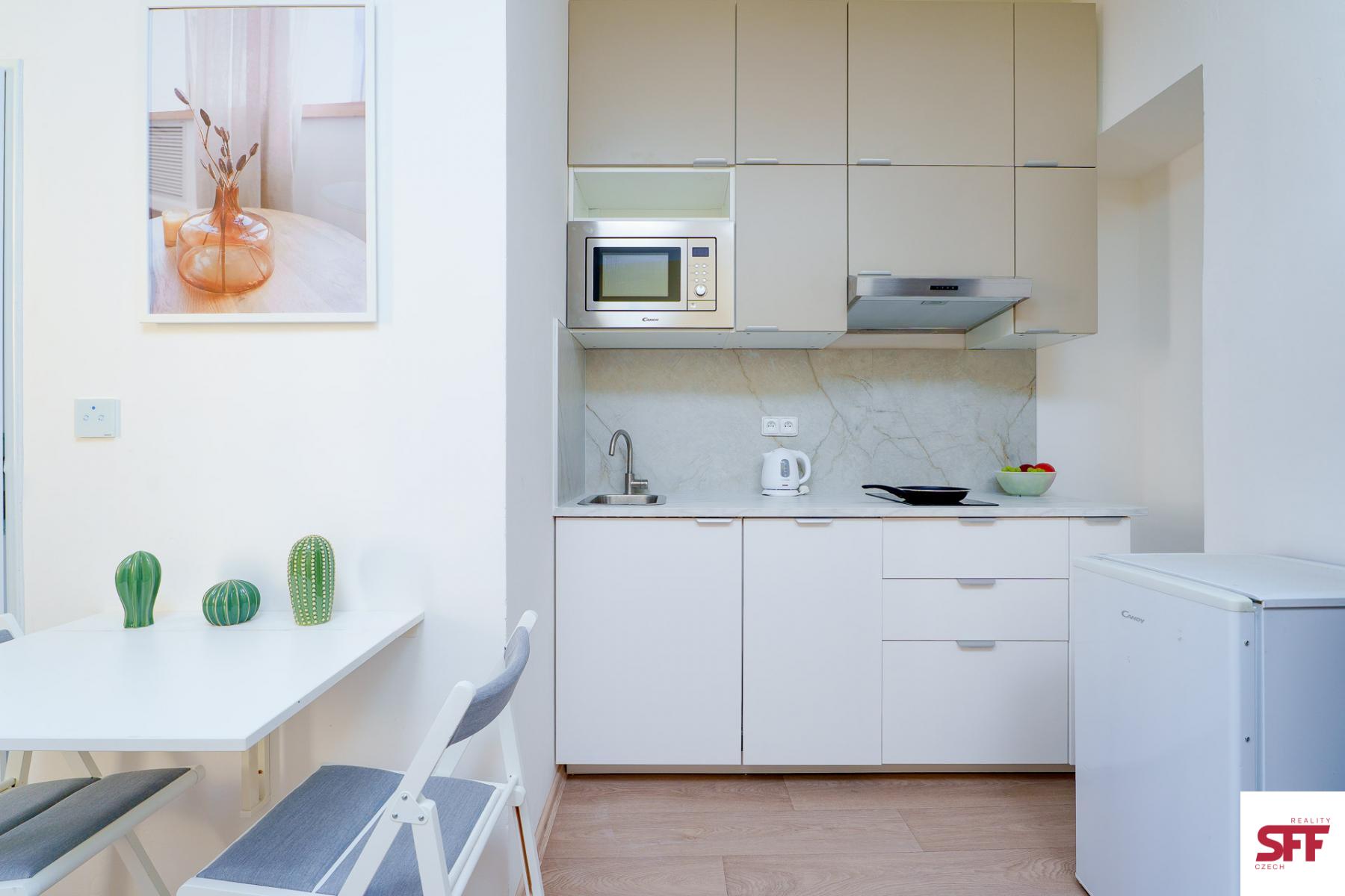 No commission! Available February 2, 2026. Fully furnished, recently renovated studio apartment no 40301 (17 sqm.) for short term or long term rent located in Prague 4 Nusle, just a few minutes from Náměstí Bratří Synků. Excellent public transport connections only 5 minutes by tram to I.P. Pavlova / Muzeum (metro lines A and C) and close to the Pankrác and Brumlovka business districts.