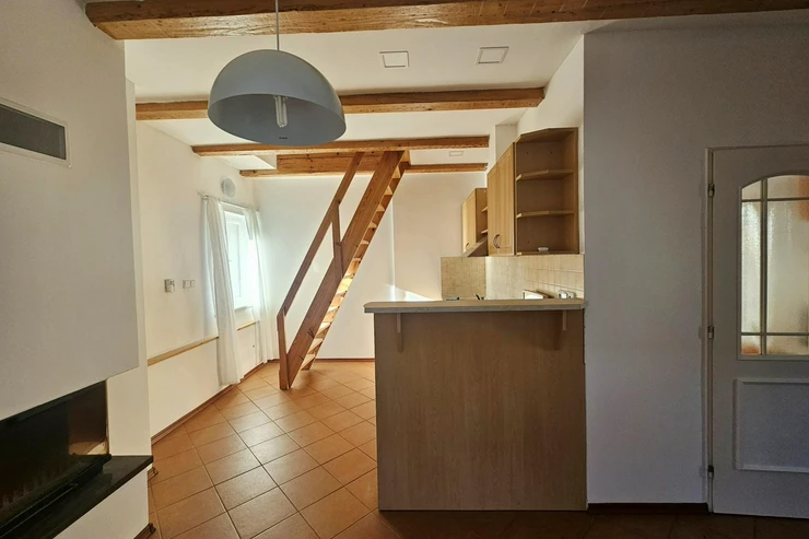 Pronájem krásného mezonetového bytu 2+kk, 75m2, který se rozkládá v podkroví a přízemí domu řadového domu.