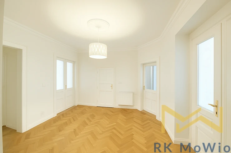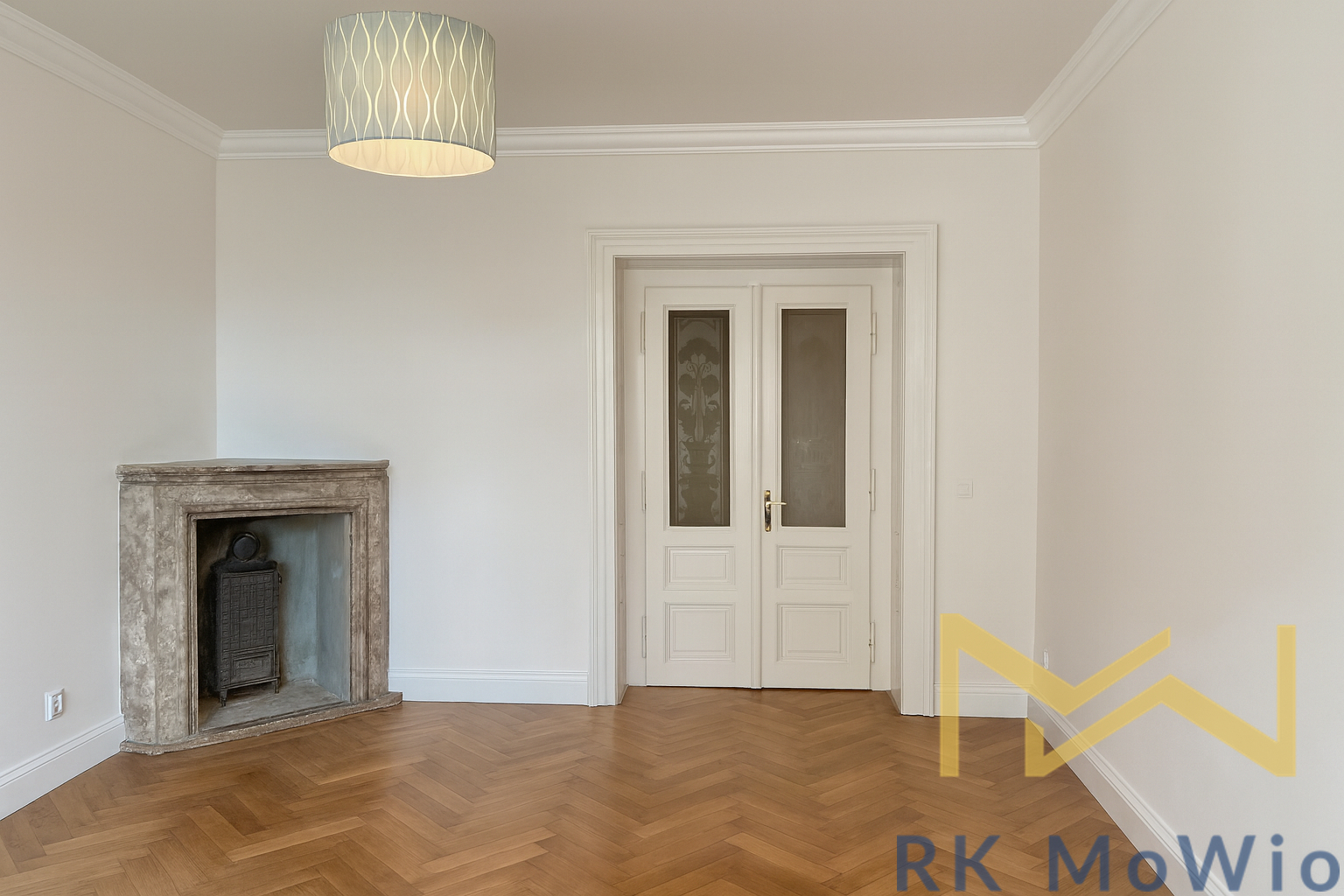 For rent, we offer a renovated, unfurnished apartment with a layout of 2 bedrooms and a floor area of 115 sqm with a balcony. It is situated on the 3rd floor (4th above ground) of a grand Art Nouveau building with an elevator on Polská Street in Praha 2 - Vinohrady.