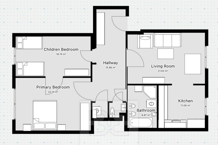 The apartment consists of a hallway, where on the right side there are two bedrooms (oriented to a quiet street), in the central part of the apartment there is a storage room, a separate toilet and an entrance to a spacious bathroom, which is illuminated by daylight through luxfers. On the left side of the apartment there is a living room with a spacious kitchen, both rooms are oriented to the courtyard. The apartment is heated by a gas boiler. PENB has not been processed, therefore we state G, although the consumption is absolutely standard.