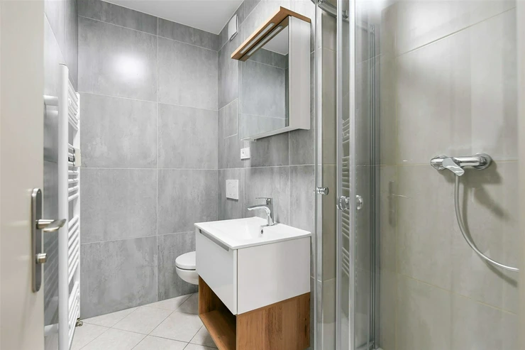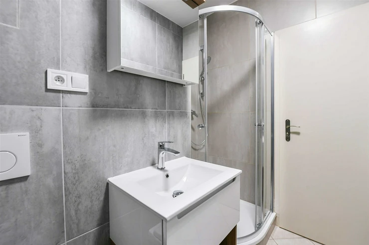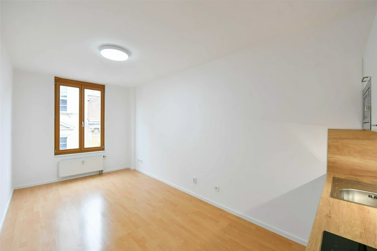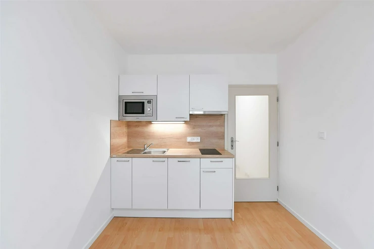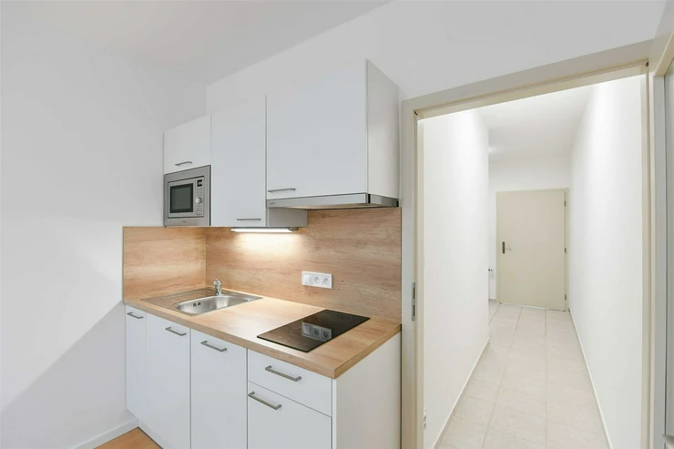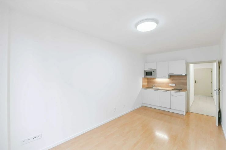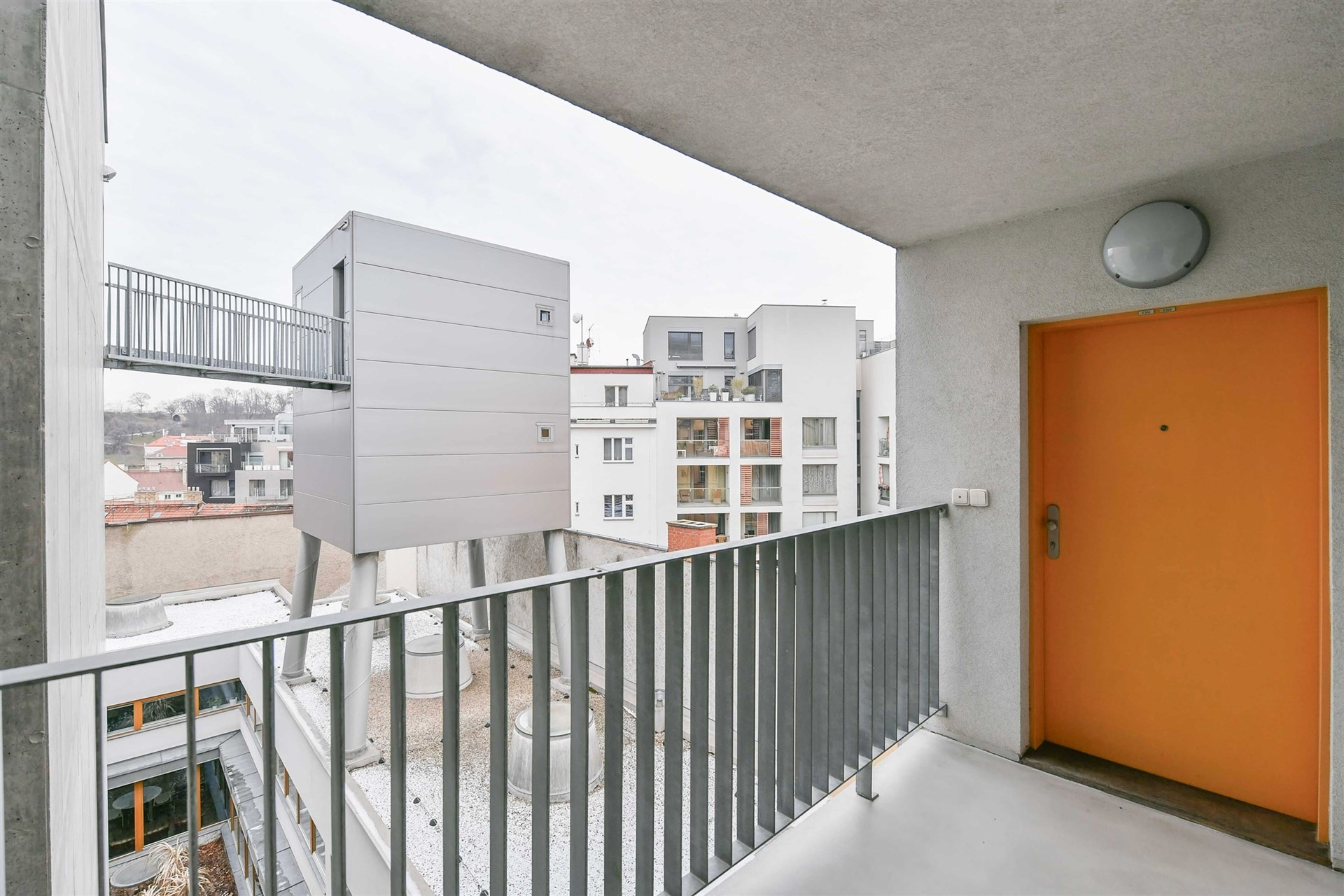 Discover the magic of living in an attractive house designed by architect Zdeněk Fránek in the sought-after location of Žižkov in Prague 3 on Štítného street. This modern 1-room studio apartment with a total area of 25.2 m² has just undergone a bathroom renovation, and a new kitchen with appliances, as well as a new washing machine and refrigerator have been installed. It is located on the third floor of a building constructed in 2005, which is a residential project with a concept of balcony-access housing and is intended for long-term rental. The apartment is suitable for a maximum of two people (a couple), it is being rented unfurnished and is available immediately.