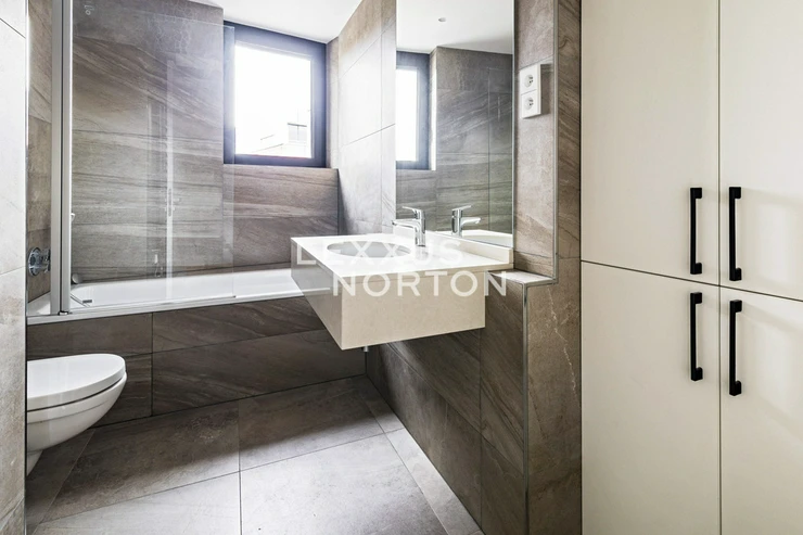 We offer an air-conditioned furnished 1-bedroom apartment for rent of 59 sqm with a balcony of 10 sqm, situated on the 3rd floor of the new residential project Residence Churchill, with reception, elevator and 24/7 security. In the vicinity of the housing there are complete civic amenities, excellent transport infrastructure and beautiful Riegrovy sady.This representative apartment for rent consists of an entrance hall, a spacious living room with a dining and kitchen area with access to a 10 sqm balcony, a cozy bedroom and a bathroom. The apartment comes with a garage parking space and a cellar.The apartment is offered fully furnished. There is a built-in wardrobe in the hallway, and the kitchen is equipped with a ceramic hob, oven, refrigerator, freezer, and dishwasher. The bathroom has a bathtub, toilet, and storage cabinets. A washing machine and dryer are also included.Vinohrady is one of the most desirable Prague locations. They have a great location where everything you need can be found within 10 minutes walk. The area has excellent transport accessibility - 2 metro stations - Namesti Miru and I.P. Pavlova, several tram lines and buses. Wenceslas Square can be reached by public transport in just 5 minutes. The road connection is also good. The motorway ring road can be reached in just 12 minutes by car and the Vaclav Havel Airport in 27 minutes. There are complete civic amenities in the vicinity of the house - pharmacy, clinic, post office, supermarkets, offices, banks, local shops, restaurants and bars. Nearby there are kindergartens, primary and secondary schools, a college and playgrounds. For leisure activities you can use Havlickuv and Rieger's orchards with beautiful views of Prague.The amount of billable monthly advances is CZK 9,000.The inquiring client agrees to pay a commission of 1 month's rent plus VAT. If you are unable to view the property in person, we also offer you a video tour from the comfort of your home in real time via Messenger, WhatsApp and other communication platforms.