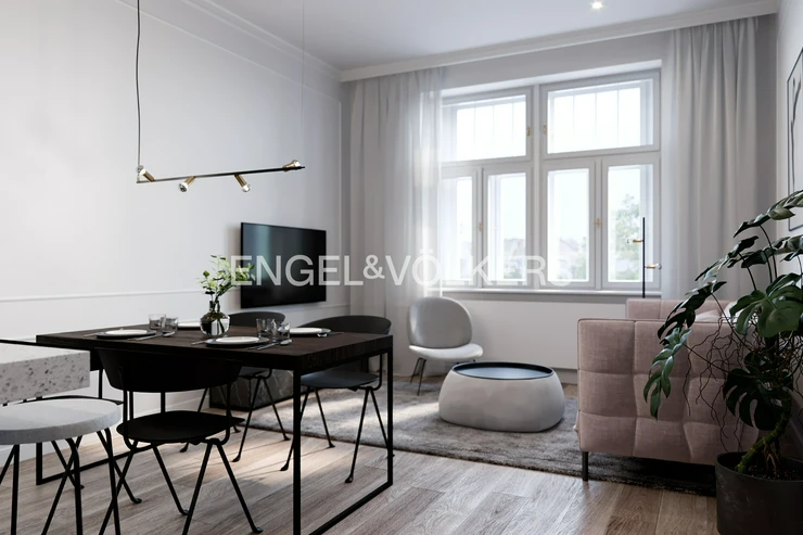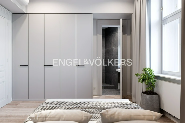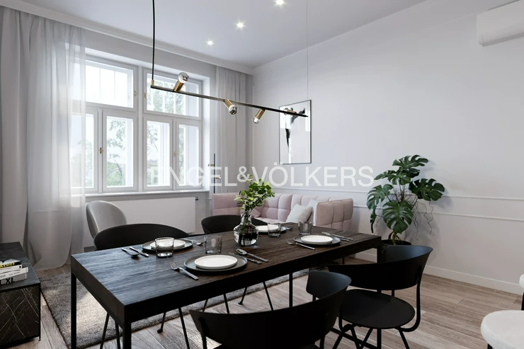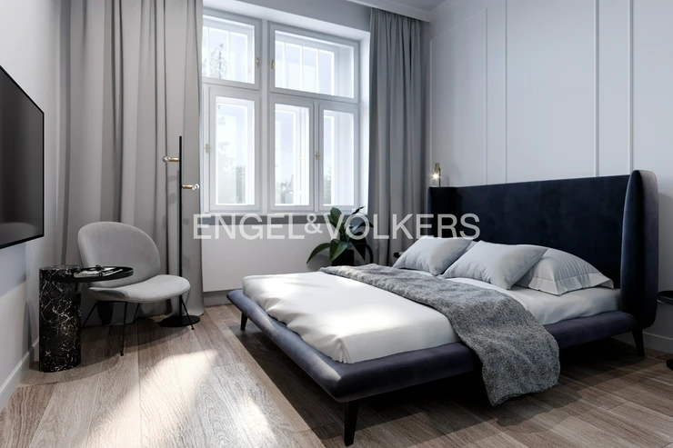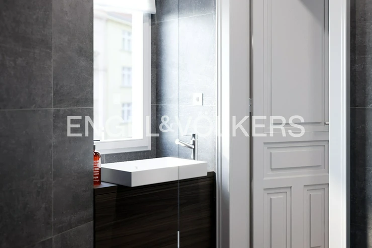 Art Nouveau apartment building after complete reconstruction, right on the square of George of Podebrady. Representative common areas of the house. Quality materials and sanitary equipment were used for the reconstruction of the apartment, solid wooden floors are laid on the floors. Landmark is a living room with kitchenette. The fully equipped kitchen is equipped with quality appliances. One bedroom has its own dressing room and the other en-suite bathroom. The second bathroom is accessible from the spacious hall and also an extra separate toilet. Features include built-in storage, washer and dryer, air conditioning is a matter of course. Other equipment can be arranged upon agreement for higher rent. One garage space near the house is included in the rent. House charges 2 000 CZK / person + energy transfer.