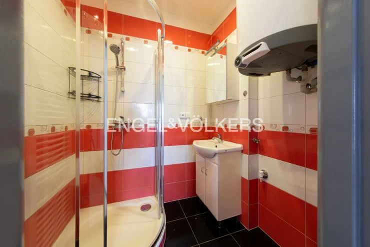 The building is entered directly from the street and up the stairs to the 4th floor. The apartment is partially reconstructed and is very tastefully furnished. The apartment has three large, beautifully bright rooms with optimal southern window orientation, which ensures plenty of daylight and pleasant warmth. The apartment is very quiet. There is a separate kitchen, which is already equipped with appliances. You will find a separate toilet, a bathroom with a shower corner, and a practical storage closet.