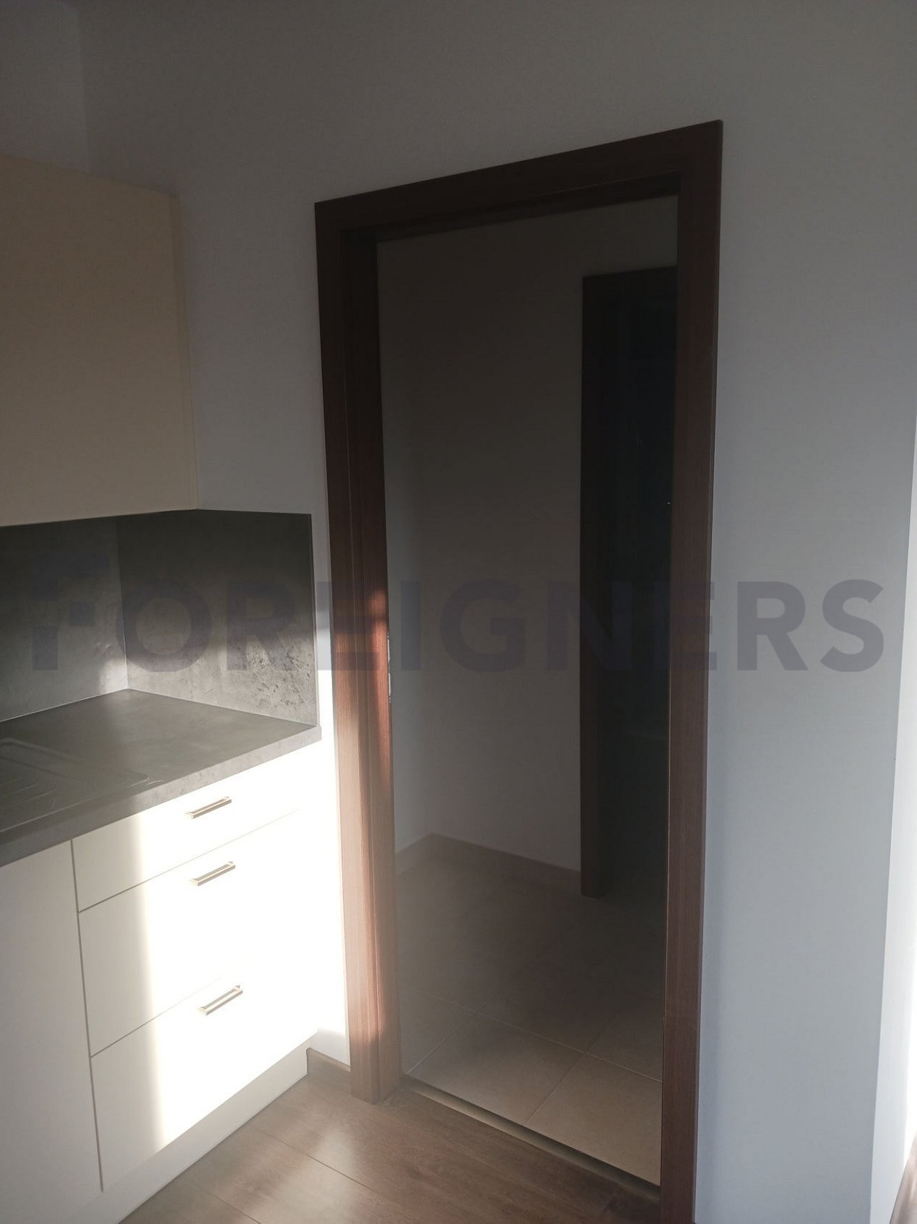 The living room includes a fully equipped kitchen with an electric oven, hob, fridge with freezer, and dishwasher. The flooring throughout the apartment is high-quality vinyl, with the exception of the bathroom and toilet, which are finished with ceramic tiles. The apartment is also fitted with modern plastic windows with curtains, ensuring both comfort and practicality.By agreement with the owners, the apartment can be additionally furnished.