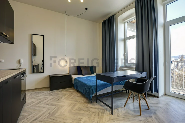The apartment is suitable for 1 or 2 people. Monthly rent is 16 200 CZK, advance payments for utilities and services 3 000 CZK, security deposit 27 000 CZK. Internet is not included.