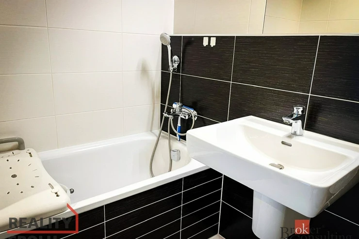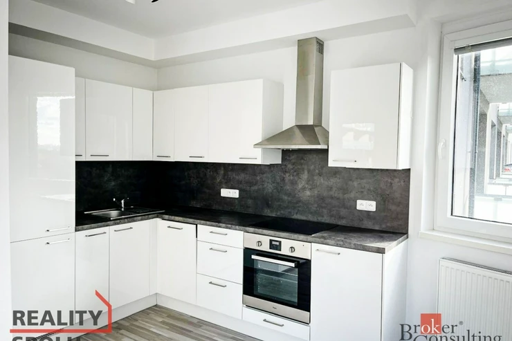 Dominantou je otevřený obývací prostor s plně vybavenou kuchyní (sklokeramická varná deska, trouba, lednice s mrazákem, vestavěná myčka). Z obývací části je vstup na prostornou lodžii, orientovanou mimo rušné komunikace – ideální místo pro relax, ranní kávu či večerní posezení.