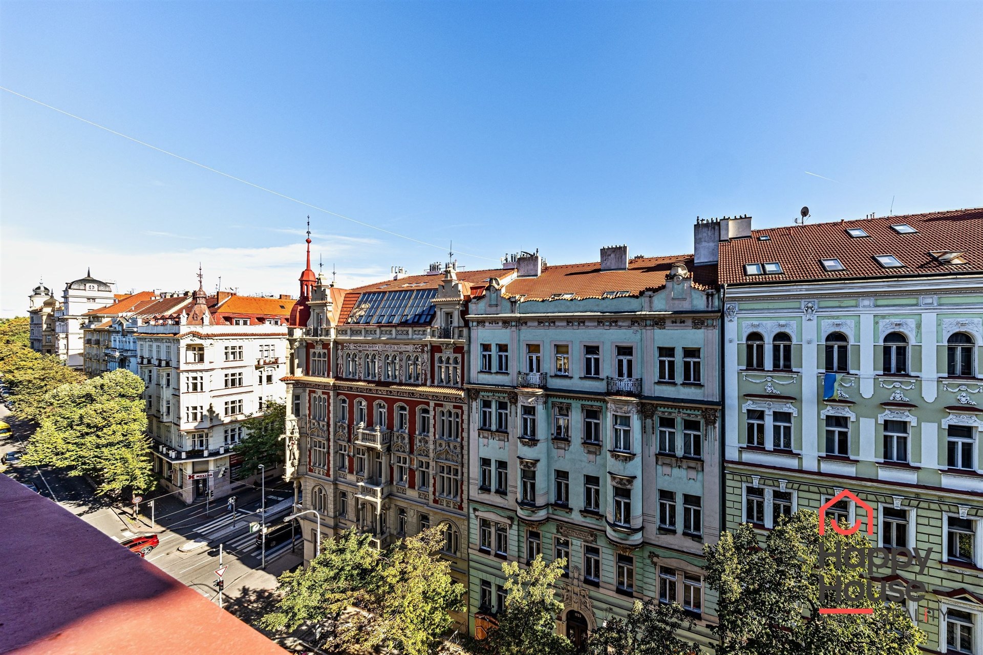 We are offering a spacious, partly furnished 2+kk apartment for rent on the 5th floor of a well-maintained brick apartment building with an elevator. The apartment is situated in a sought-after area of Prague 2 - Vinohrady, just a short walk from the popular Riegrovy sady park.