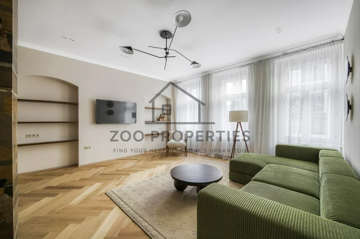 This beautifully refurbished two-bedroom apartment has been completely redesigned and newly equipped with custom-made furniture, a brand-new kitchen, wooden flooring, a modern bathroom, premium wallpapers, and interior accessories — all crafted by a leading design studio. You will be the first person to live in this apartment.