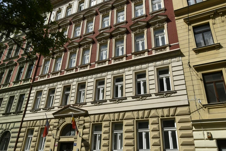 Located on the border of Vinohrady and New Town, the property provides exceptional convenience. All Vinohrady amenities and public transportation are within a 5-minute walking distance. Excellent transport links: metro line C (I. P. Pavlova), several tram lines, supermarket Billa (260 m), and a park just 100 m away.