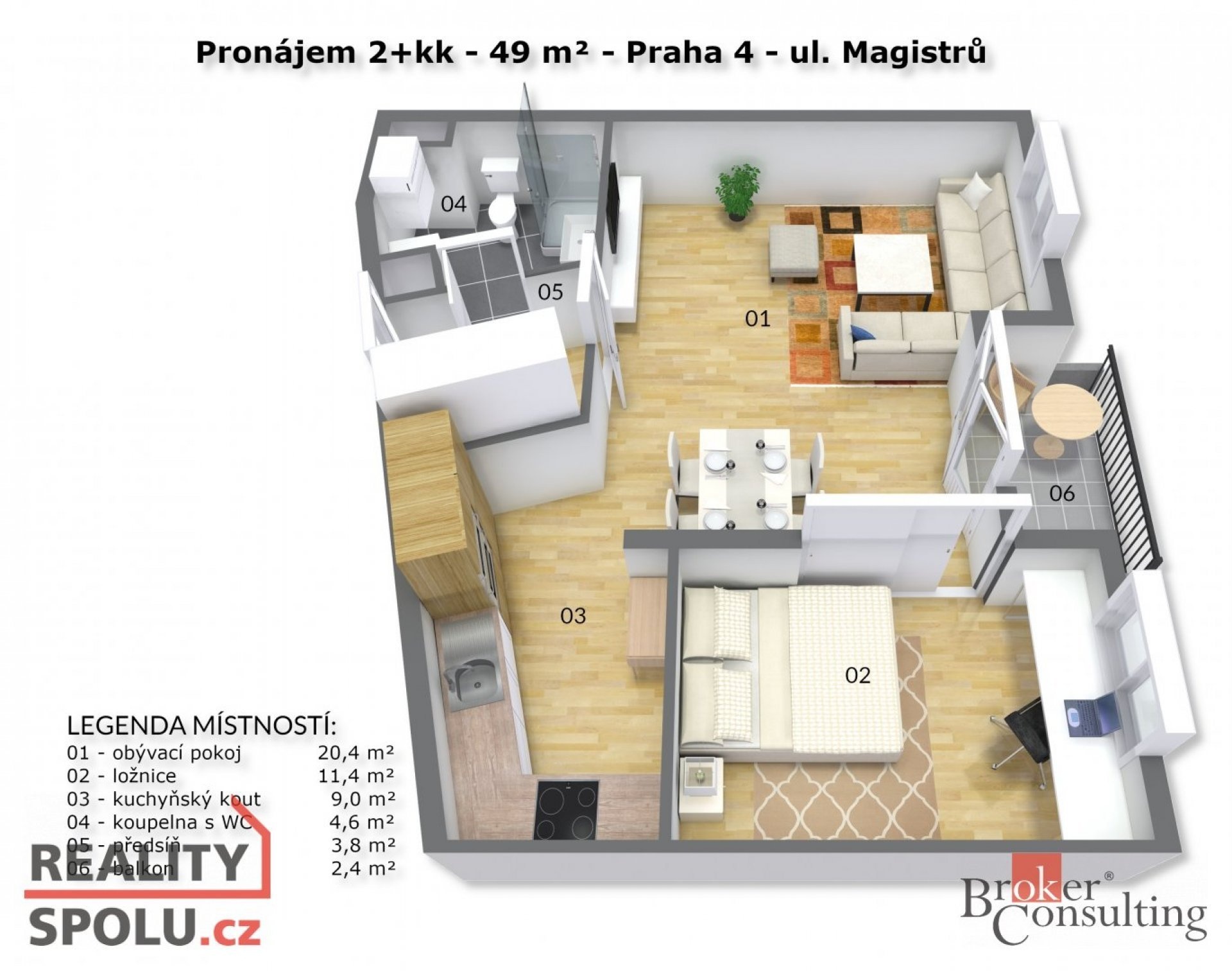 Nabízíme k pronájmu částečně zařízený a velmi dobře udržovaný byt 2 + kk s užitnou plochou 49 m2 a parkovacím stáním.