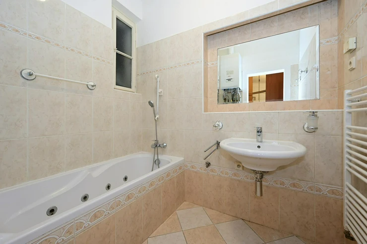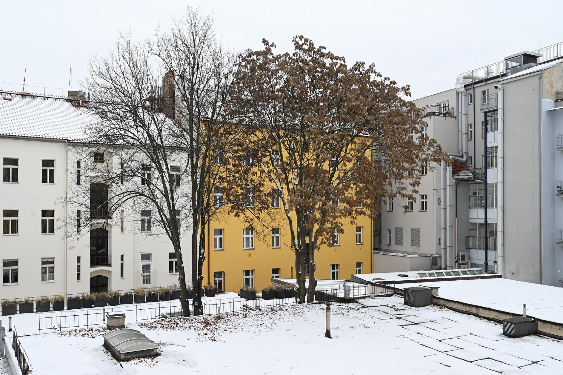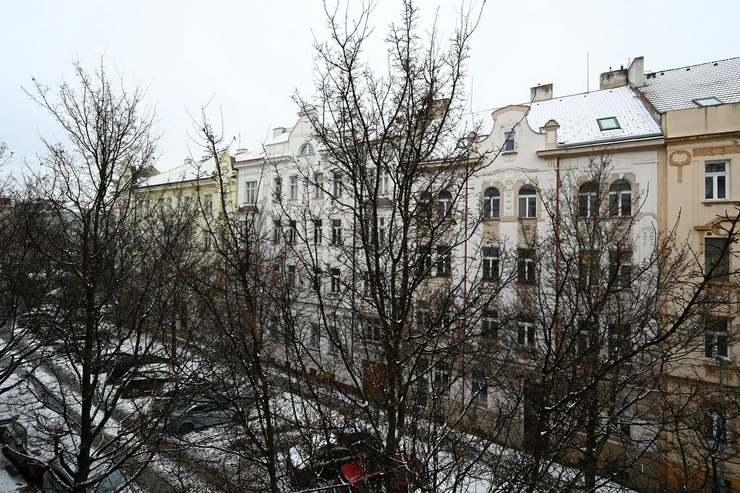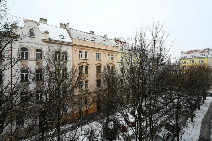 One minute walk to the Hradčanská metro station, line A. Quiet living in a quiet street.