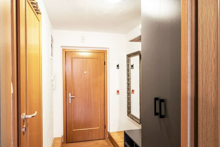 It is fully furnished, with all amenities, including air conditioning. The bedroom is on the upper loft with skylights for a pleasant morning wake up. The living space is ample, providing room for kitchen with island, comfortable dining area and relax area with couch. The apartment has excellent built in storage both down and up stairs. The bathroom is in a modern design and has a washer and a drier combo. The flat is on the 6th and last floor of the building. The elevator goes up to the first floor and thus the partment is not handicap accessible.