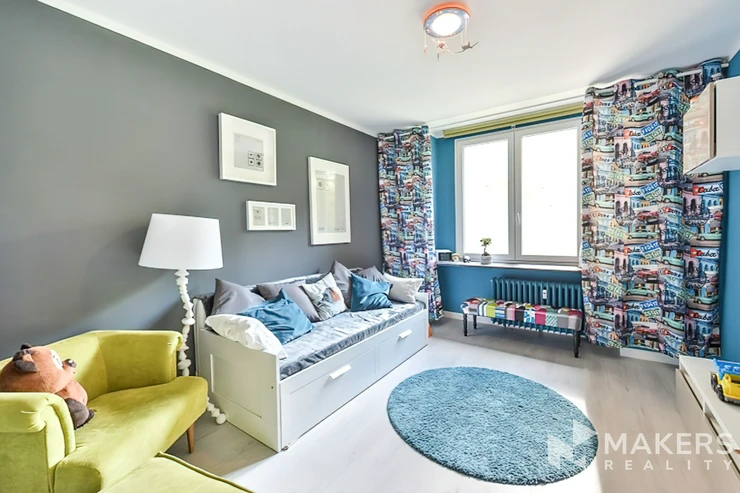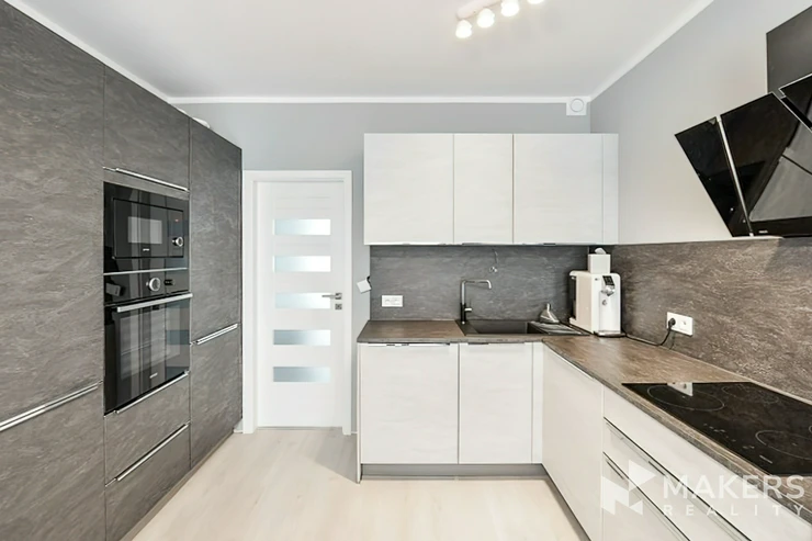 Moderní stylový byt 3+kk o ploše 63m2 se nachází ve druhém nadzemním podlaží cihlového domu s výhledem do zeleně. Interiér tvoří obývací pokoj s krásnou plně vybavenou kuchyní, která je zařízená včetně vestavěných sklokeramické varné desky s horkovzdušnou troubou a digestoří, lednicí, mikrovlnné trouby a myčky na nádobí. K dispozici je kuchyňský stůl se židlemi, obývací stěna s TV a pohovka. V krásně zařízené ložnici je manželská postel s nočními stolky. Ve druhém pokoji je postel a malá pohovka. Světlá koupelna s vanou. Toaleta je samostatná. K dispozici je pračka. V ceně pronájmu je sklep o rozloze 2m2.