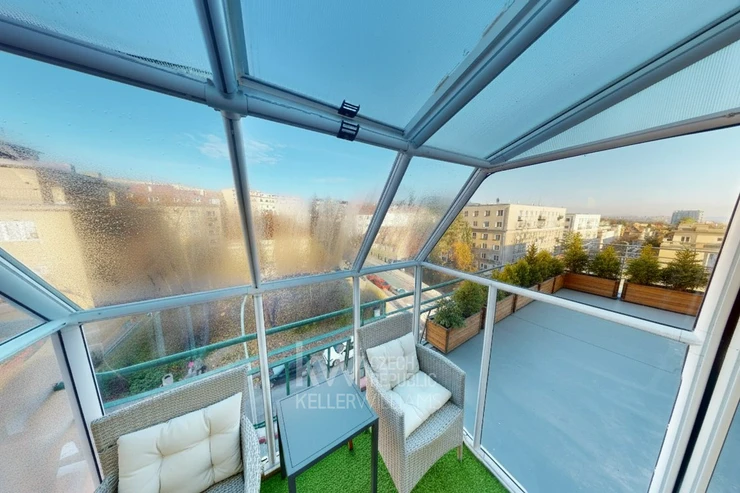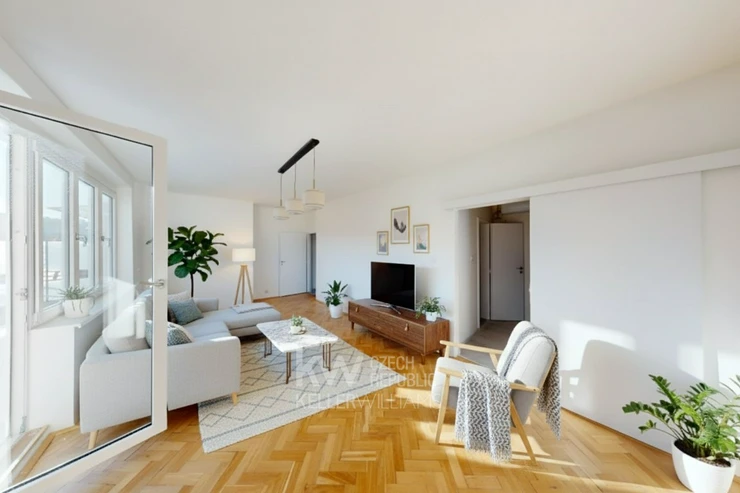 A very beautiful, atypical apartment with a total area of 139 m2 (apartment area 73 m2, terrace and winter garden area 66 m2) after complete renovation with a unique view from the south terrace of the countryside and hills on the horizon, and in all other directions. The apartment is located on the 4th floor of a classic apartment building typical for this part of Prague 6. The apartment is ready to move in immediately.