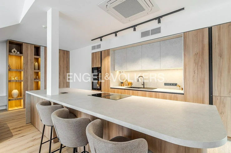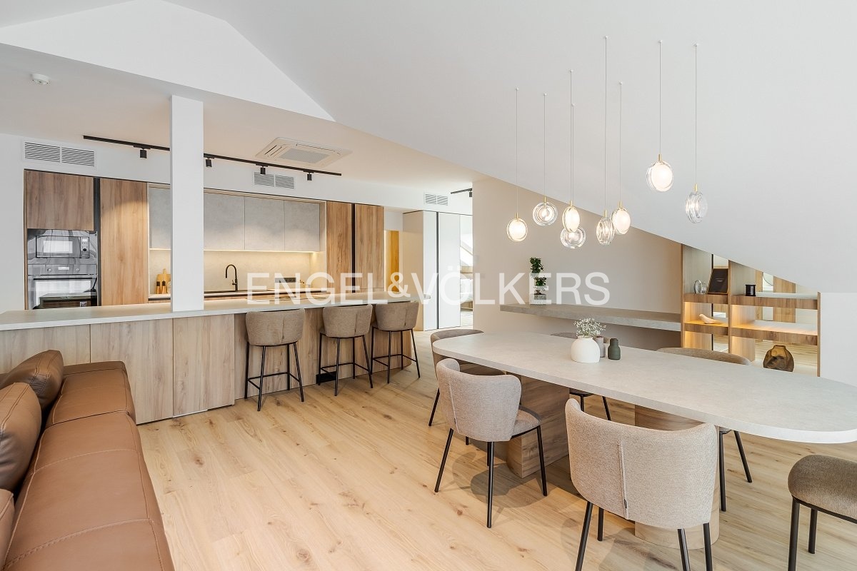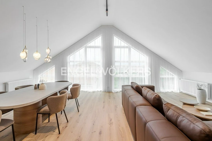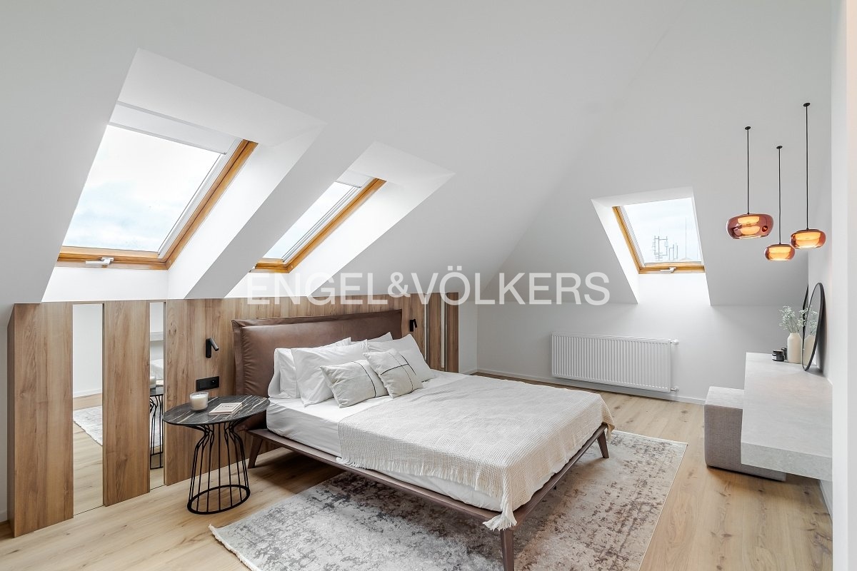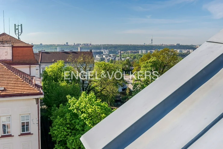 A superbly renovated apartment on the top floor of the Medical & Business Centre Bulovka is ready for immediate rent. The apartment is fully furnished with custom made furniture imported from Italy. The design guarantees maximum comfort of living.
