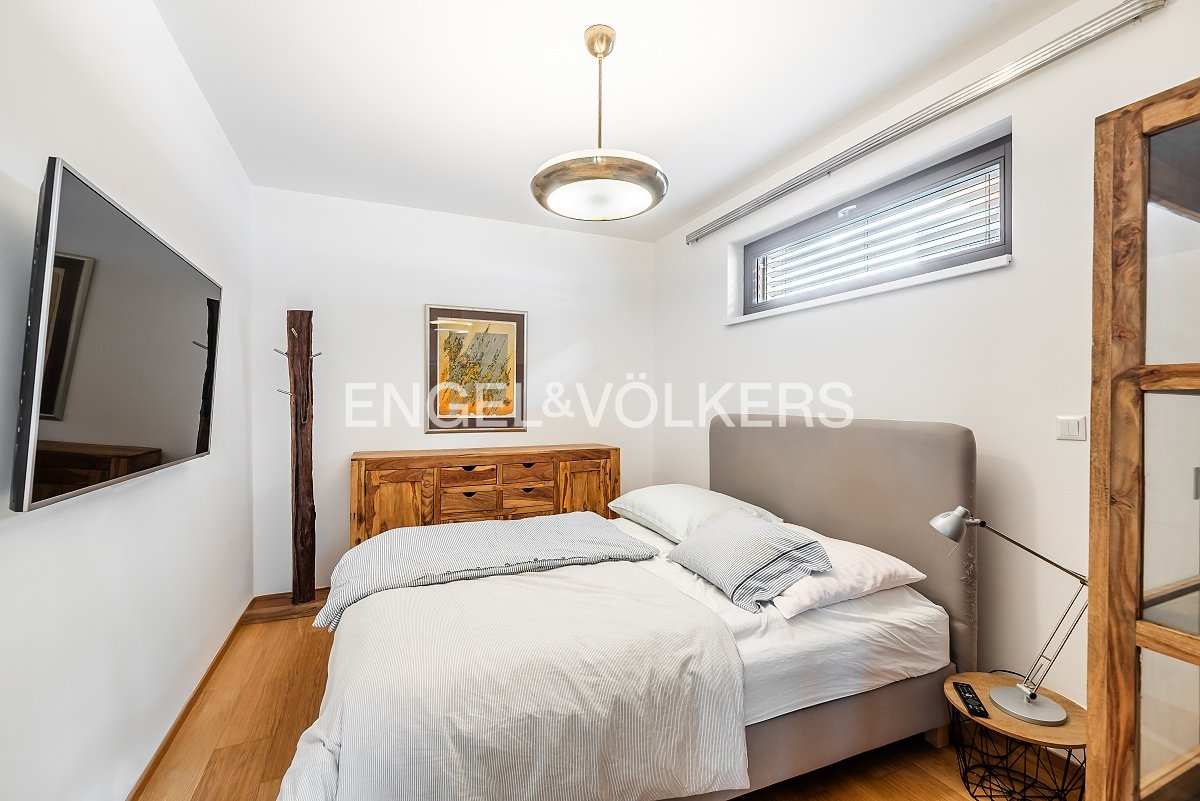 We offer a bright 3+kt apartment for long-term rent in a quiet residential area - Košíře. The apartment is located in a residence; the location provides excellent transport links to the centre or to Cibulka Park, which is right next to the building. The apartment has a fully equipped kitchen with all appliances, furniture, storage space, automatic outdoor blinds, parking space in a covered garage, and a spacious garden with a paved terrace.