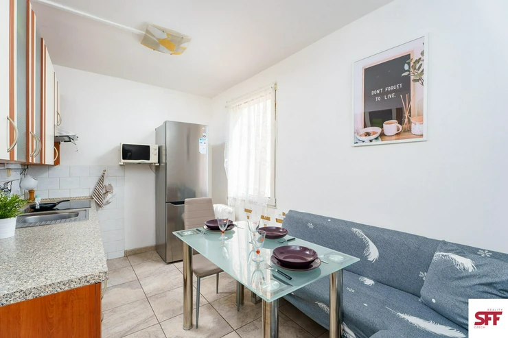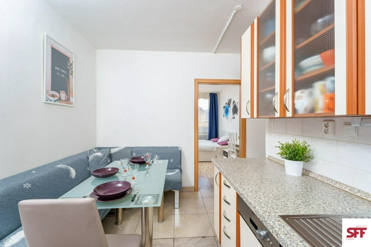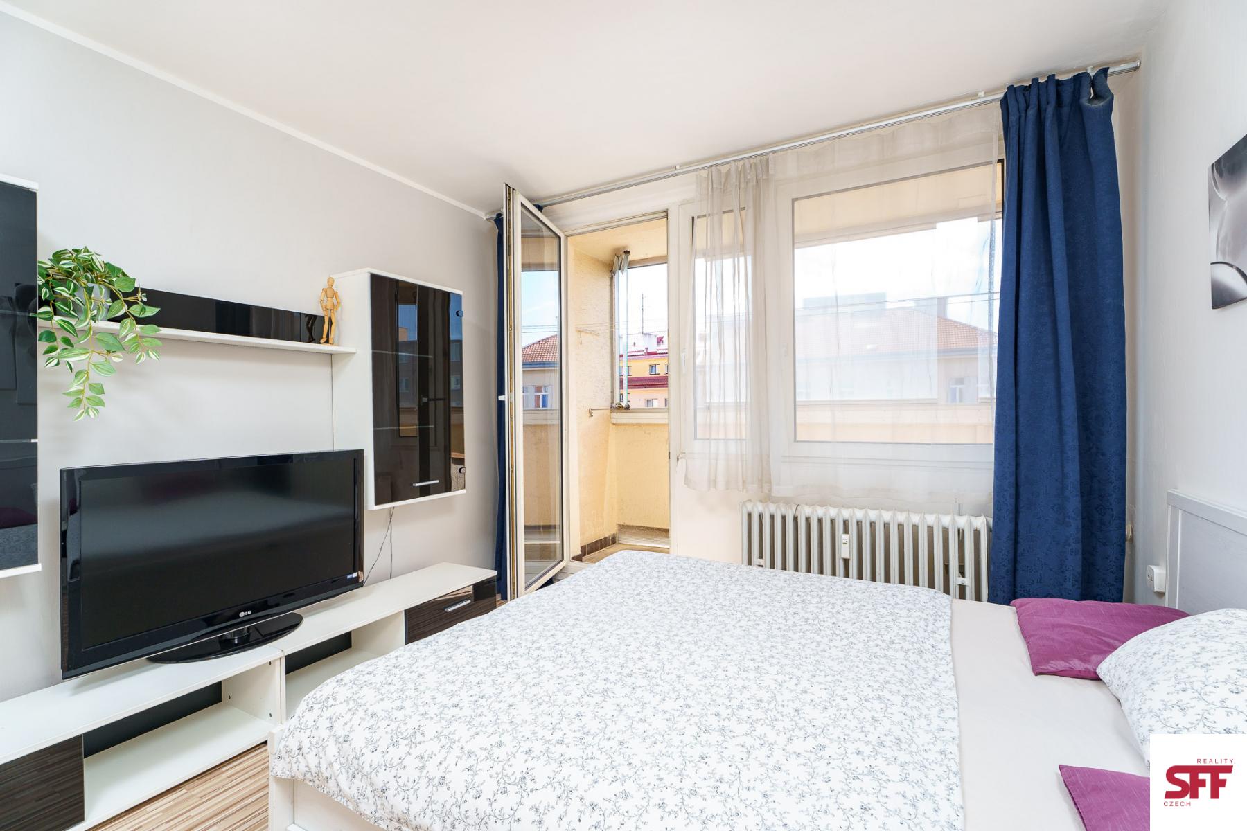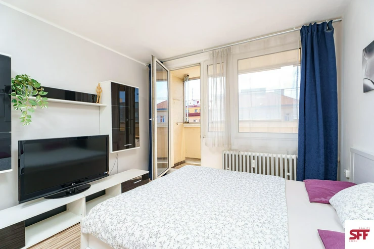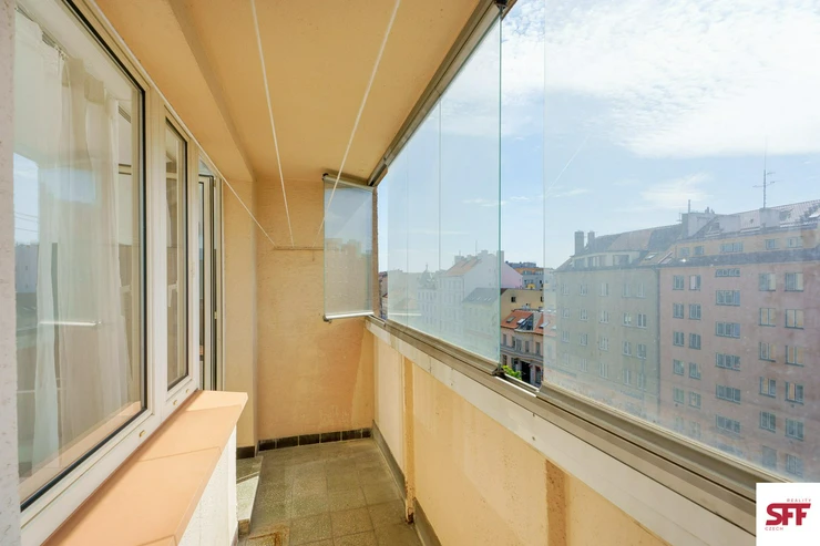 The location offers excellent access to the city center as well as full civic amenities nearby. The apartment is situated in a well-maintained building with an elevator on Sokolovská street, in a quiet area of Prague 9 Libeň.