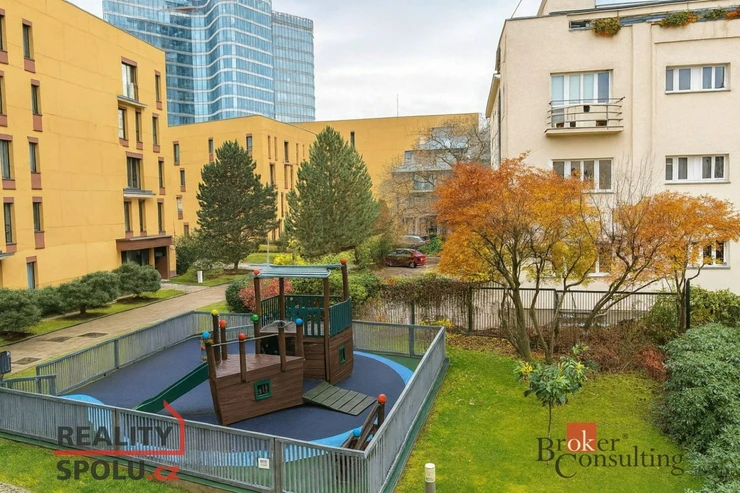 K bytu náleží sklep a garážové stání. Celý komplex je monitorován kamerovým systémem, k dispozici je recepce, dětské hřiště i lezecká stěna, což zajišťuje bezpečné a komfortní bydlení.