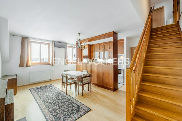 The location offers perfect access to the city centre – tram stops and the Anděl metro station are within walking distance. The Nový Smíchov shopping centre, Sacré Coeur Park, and the popular Petřín Hill are located nearby. There are also a number of cafes, restaurants, and small shops in the area.