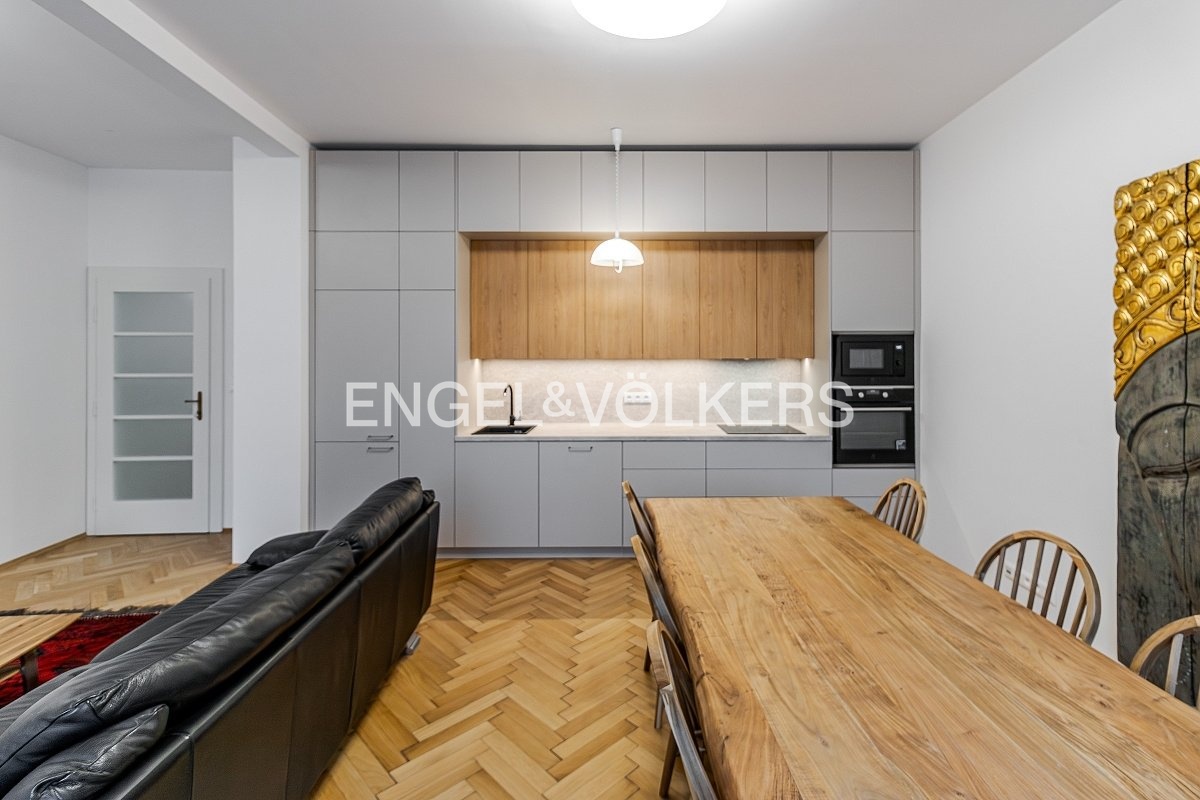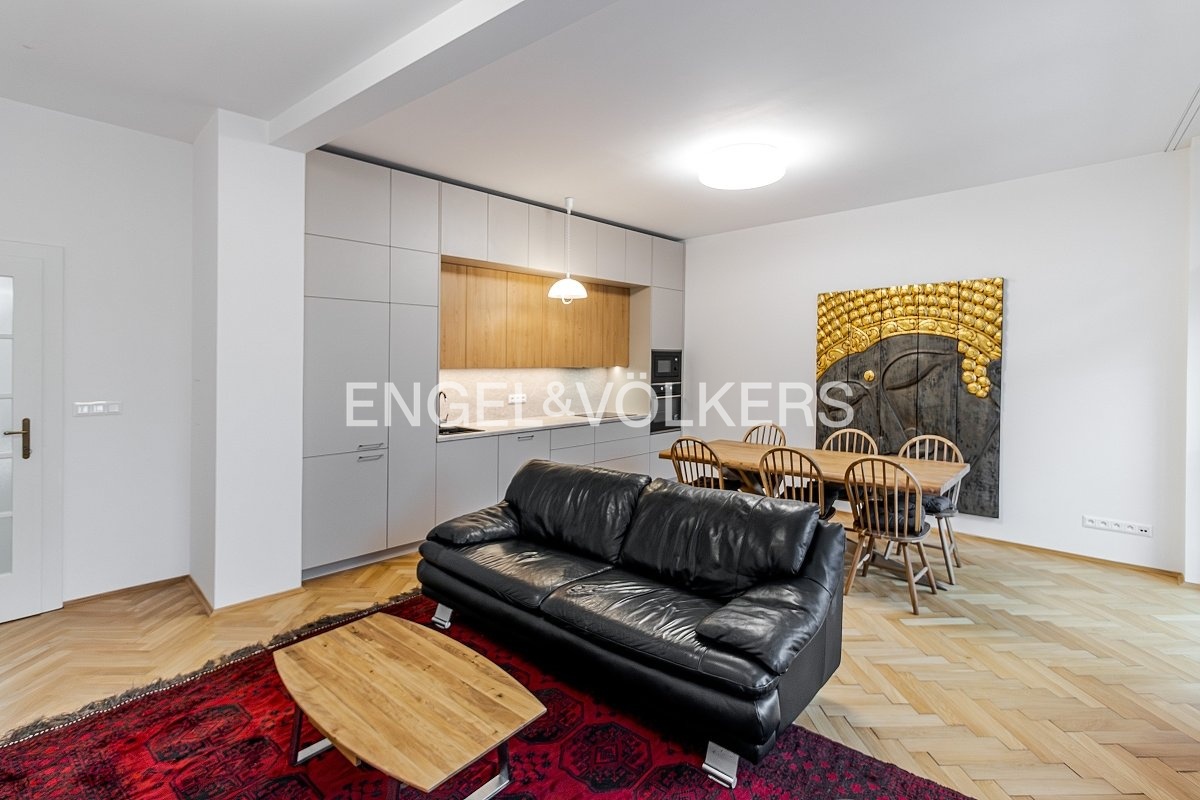 The apartment is in a great location with a view of Prague Castle and close to Petřín Hill.