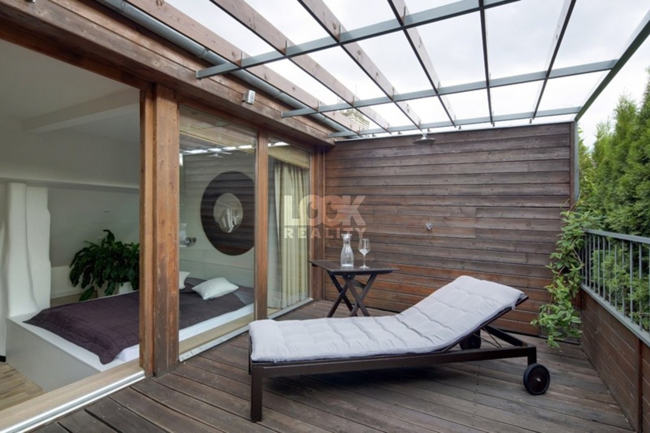 Luxusní byt s terasou nedaleko metra Anděl. Nabízíme k pronájmu luxusní byt 2+kk o velikosti 53 m2 s terasou, který se nachází v 5. patře domu bez výtahu v ulici Holečkova. Apartmán má samostatnou ložnici v horním patře mezonetu s dvoulůžkem, z ložnice je vstup na terasu. V dolním patře je vybaven skříní, obývací zónou s rozkládacím sofa pro další 1–2 osoby. Dále je zde vybavená kuchyňská linka, jídelna, koupelna se sprchovým koutem a odděleným WC, klimatizace, TV / SAT. K dispozici je internet, 1 x týdně úklid. Součástí je také recepce. Nedaleko se nachází Petřínská rozhledna, zahrada Kinských, pěkná místa k procházkám, odpočinku. Kompletní občanská vybavenost v místě: restaurace, pošta, zdravotnická zařízení, obchodní centrum Nový Smíchov. V blízkosti je tramvajová zastávka U Zvonu (tram 10, 16, 15), stanice metra Anděl (B) cca 5 minut jízdy. Příjemné bydlení. Doporučujeme. Možnost krátkodobého pronájmu. Cena za krátkodobý pronájem se může lišit. Dostupné od 5.1. 2026.
