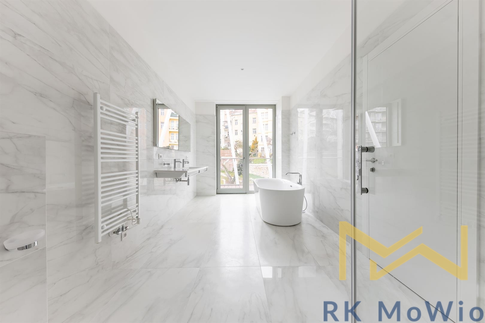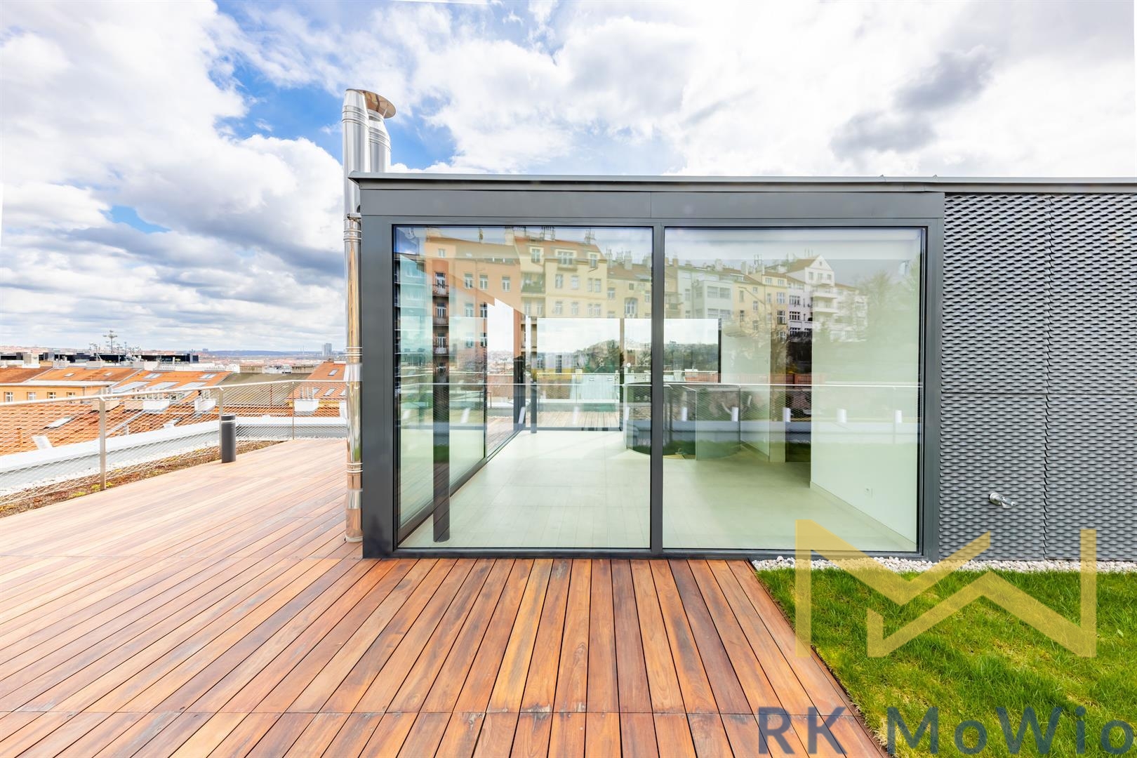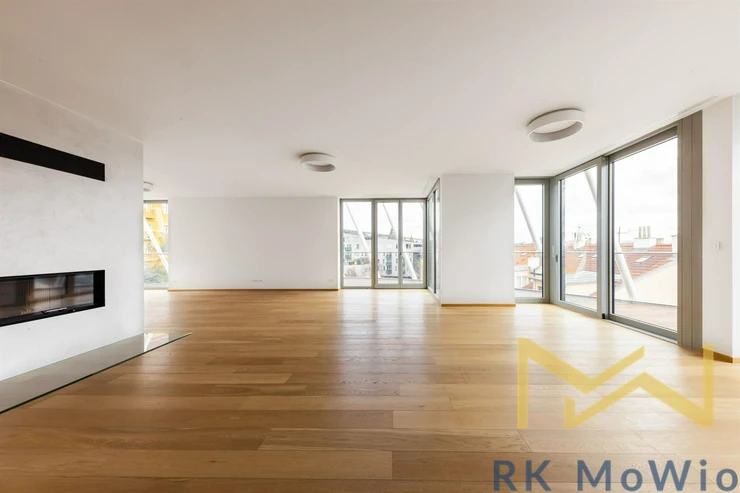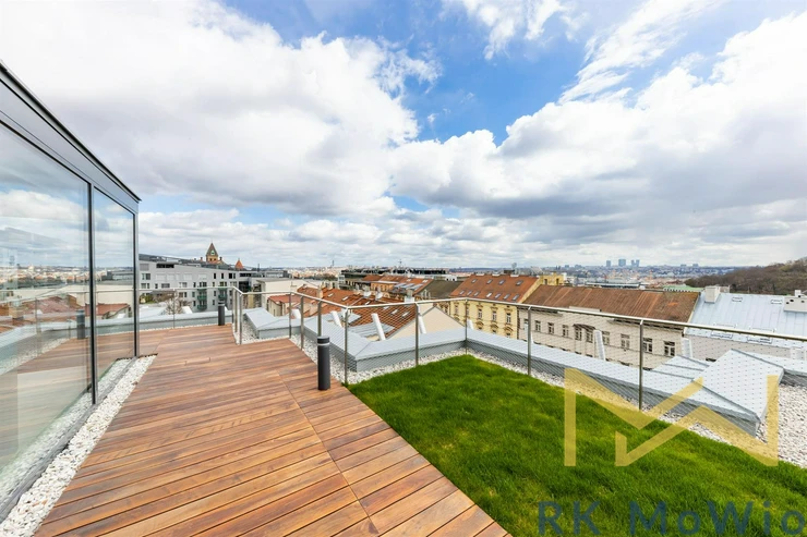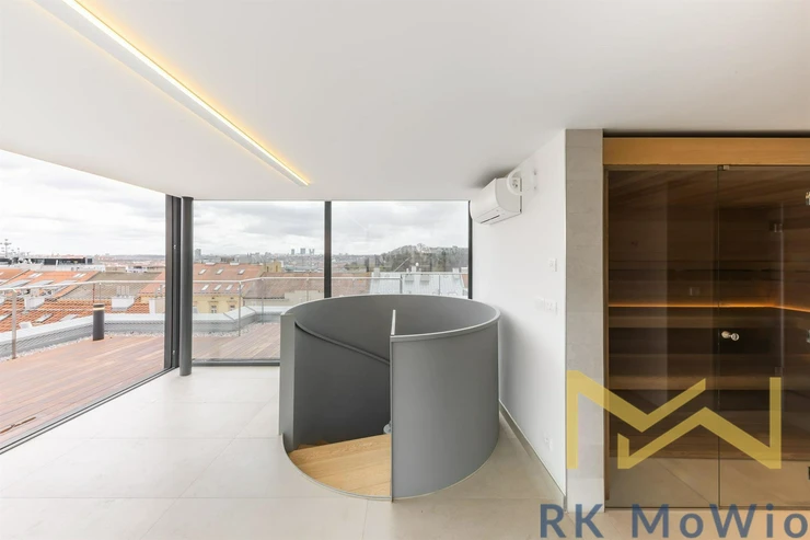 We offer for rent a modern 3-bedroom unfurnished duplex apartment No. A 602 with a usable area of 211 sqm, terraces and a garden with a total area of 110.72 sqm, on the 5th and 6th floors (6th and 7th above-ground floors) with an elevator in the Ellipsis Residence on Holečkova Street, Prague 5 – Smíchov.