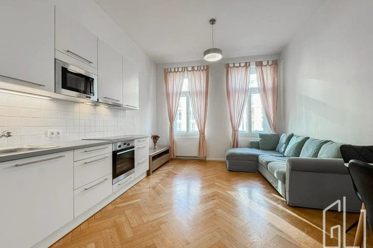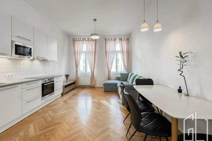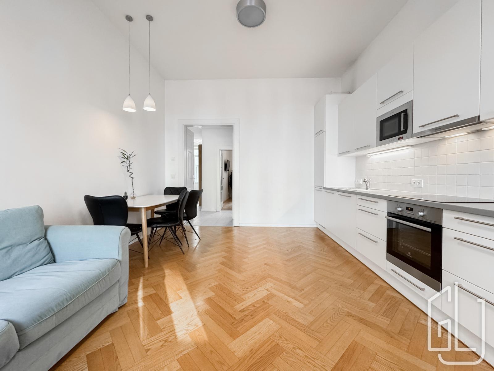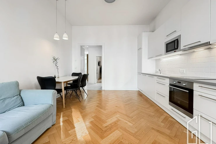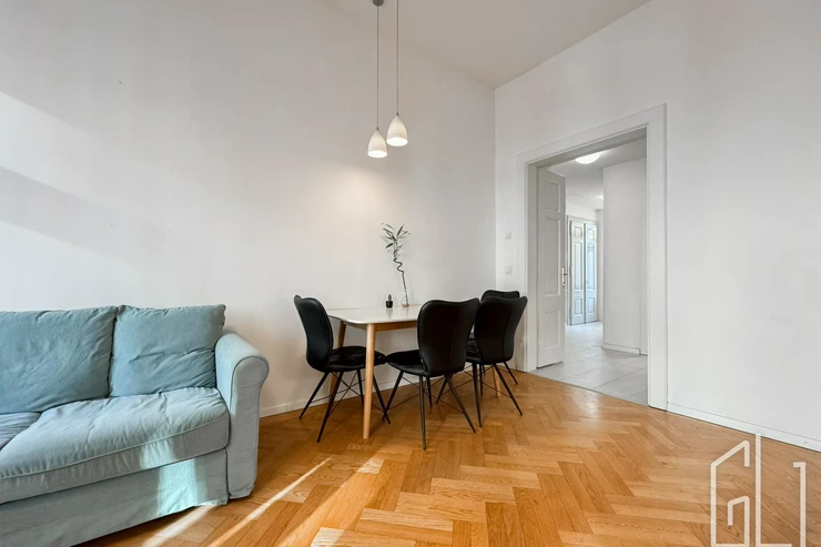 GLJ Partners is offering a bright 1-bedroom apartment with balcony for long-term rent. The apartment is located on the 3rd floor of a well-maintained apartment building with lift, directly by Kaizlovy sady Park in the highly sought-after district of Prague 8 Karlín.