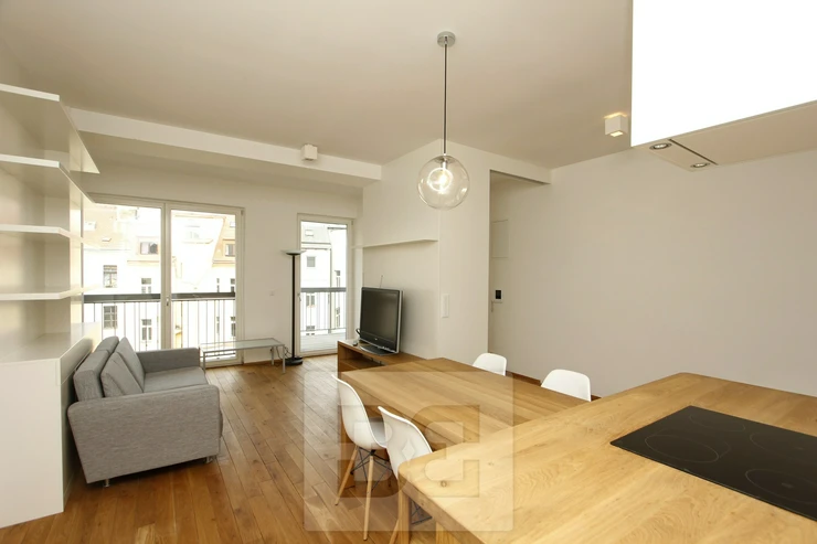 We are exclusively offering a very nice, partially furnished 3+kk apartment on the 4th floor with an elevator, located on U studánky street, Prague 7 – Bubeneč, for long-term sublease. This is a highly sought-after location in close proximity to Stromovka Park and Letenské sady Park. The apartment has a total area of 83 m² + a 7 m² terrace and was designed by an interior architect. The modern interior design creates attractive yet highly functional living space with plenty of storage. It consists of a spacious living room with access to the terrace, a kitchenette with built-in appliances, a spacious bedroom, a study, a dressing room, and a bathroom with a shower and toilet. The apartment is fully equipped, including high-quality custom-made furniture, built-in wardrobes, and appliances (TV, refrigerator/freezer, ceramic hob, electric oven, washing machine). Electric heating, water heated by electric boiler. The apartment has a cellar. Parking on the street in front of the building. Great location with excellent transport links and amenities. Excellent transport links and amenities – restaurants, shops, and services. Starting approximately from February 2026, a reserved parking space in the courtyard of the building will be available for an additional 3,000 CZK per month, with the option to charge an electric vehicle.