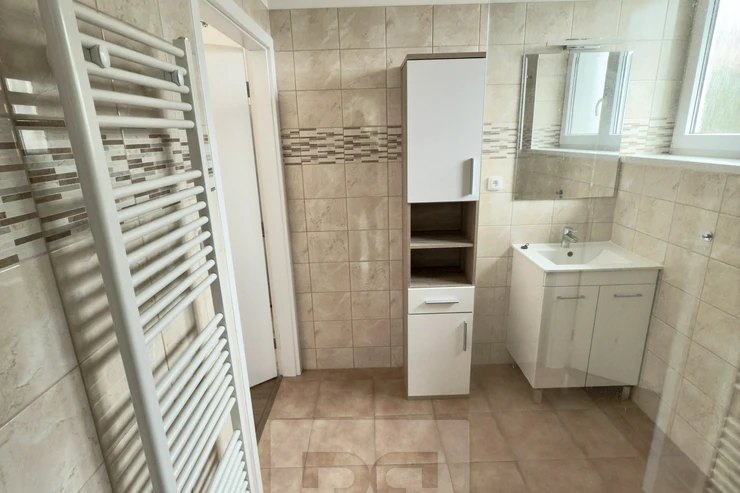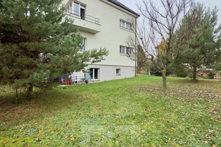 We offer for rent a 3+1 apartment with a living area of 120 m², located on the 1st floor of a smaller apartment building (only 4 apartments), in Nad Pomníkem street. The apartment consists of an entrance hall, separate toilet with sink, pantry, kitchen equipped with built-in appliances, including a dishwasher, technical room with preparation for a washing machine and dryer, which has a gas condensing boiler for water heating and heating, bathroom with shower and three spacious rooms. The apartment has a cellar. Tenants can use a 300 m² garden with seating and a portable fireplace.