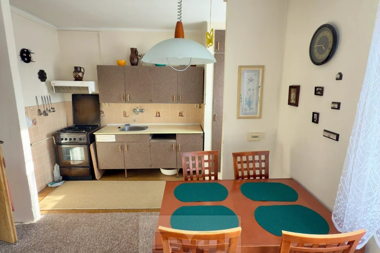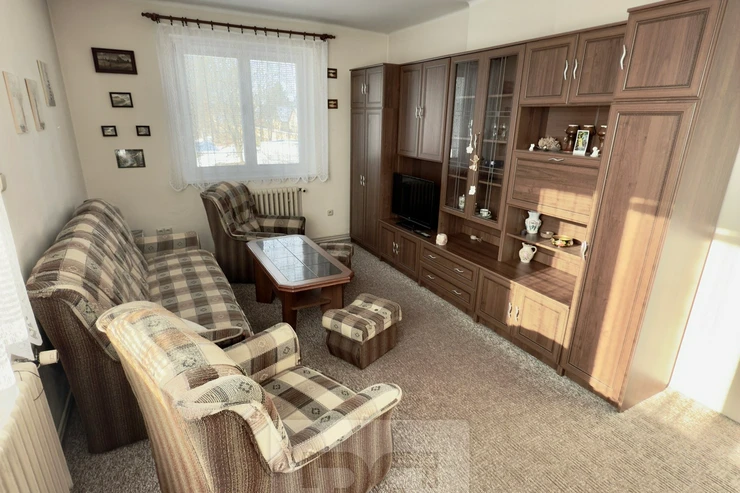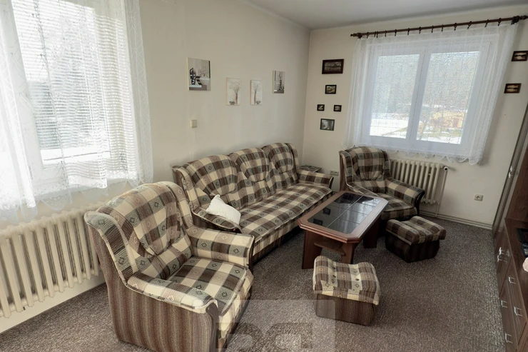 We offer for rent a 3+kk apartment with a living area of 72 m², located on the 2nd floor of a house without an elevator, at Kolešovice 294. The apartment consists of an entrance hall, bathroom with bathtub, separate toilet, pantry, two separate rooms and a living room with a kitchenette. The apartment is offered furnished, see photo, if you are not interested in the furniture, it can be removed. The apartment has two cellars. Tenants also have the opportunity to use the garage in the yard behind the house and land for growing plants, along with a smaller farm building for raising animals.