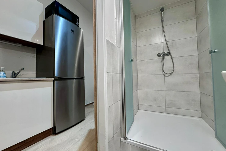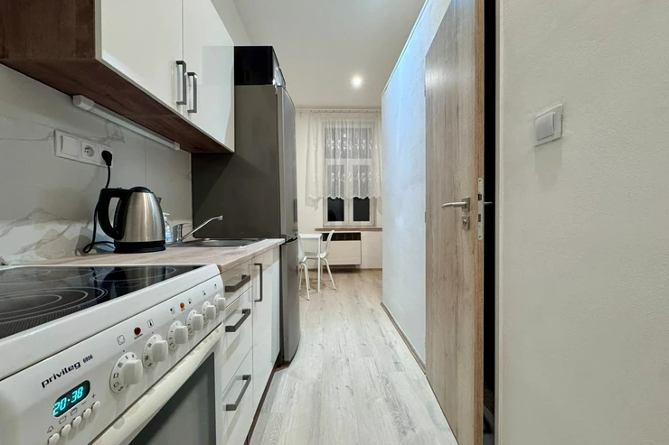 We offer for rent a bright and spacious 1+1 apartment with a total area of 50 m2, in the popular location of Prague 9 Vysočany. The apartment consists of a living room with a fully equipped kitchenette (dishwasher, oven, hob, fridge with freezer, extractor hood). The apartment is oriented to the south and west, thanks to which it is bright all day long.