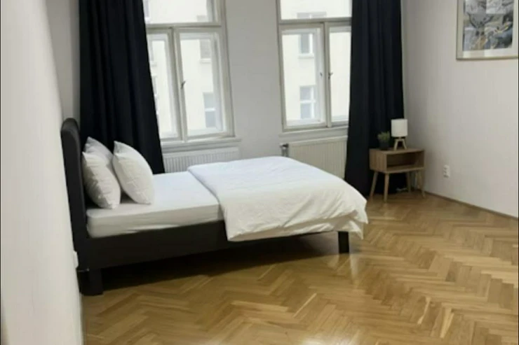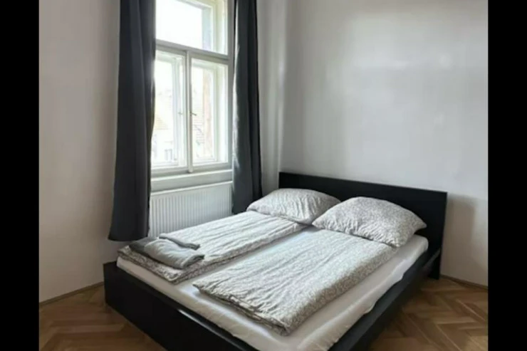 The interior is renovated, with beautiful wooden parquet floors and high ceilings. Large windows ensure a pleasantly bright space throughout the day. The apartment feels open, airy and is suitable for an individual, a couple or even two roommates.